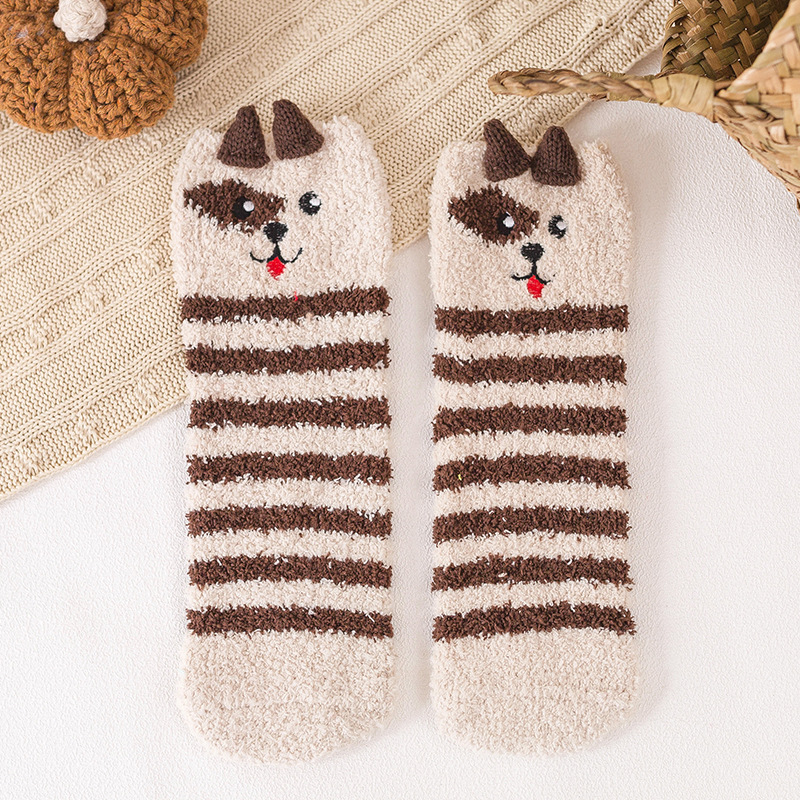 29 만화 스트레이트 자수 입체 동물 산호 양털 크리스마스 따뜻한 가정 바닥 양말 반 벨벳 튜브 양말스토어 가기