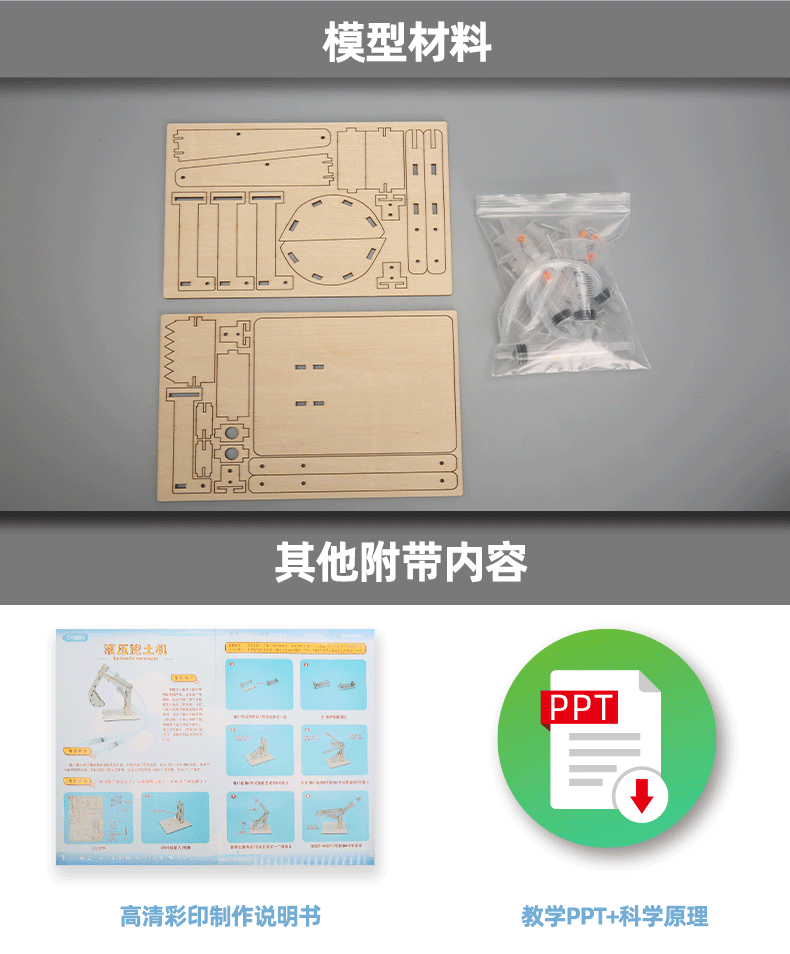 과학 기술 소량 생산 유압 굴삭기 굴삭기 DIY 초등 및 중등 학생 과학 실험 재료 과학 및 교육 작은 발명품.