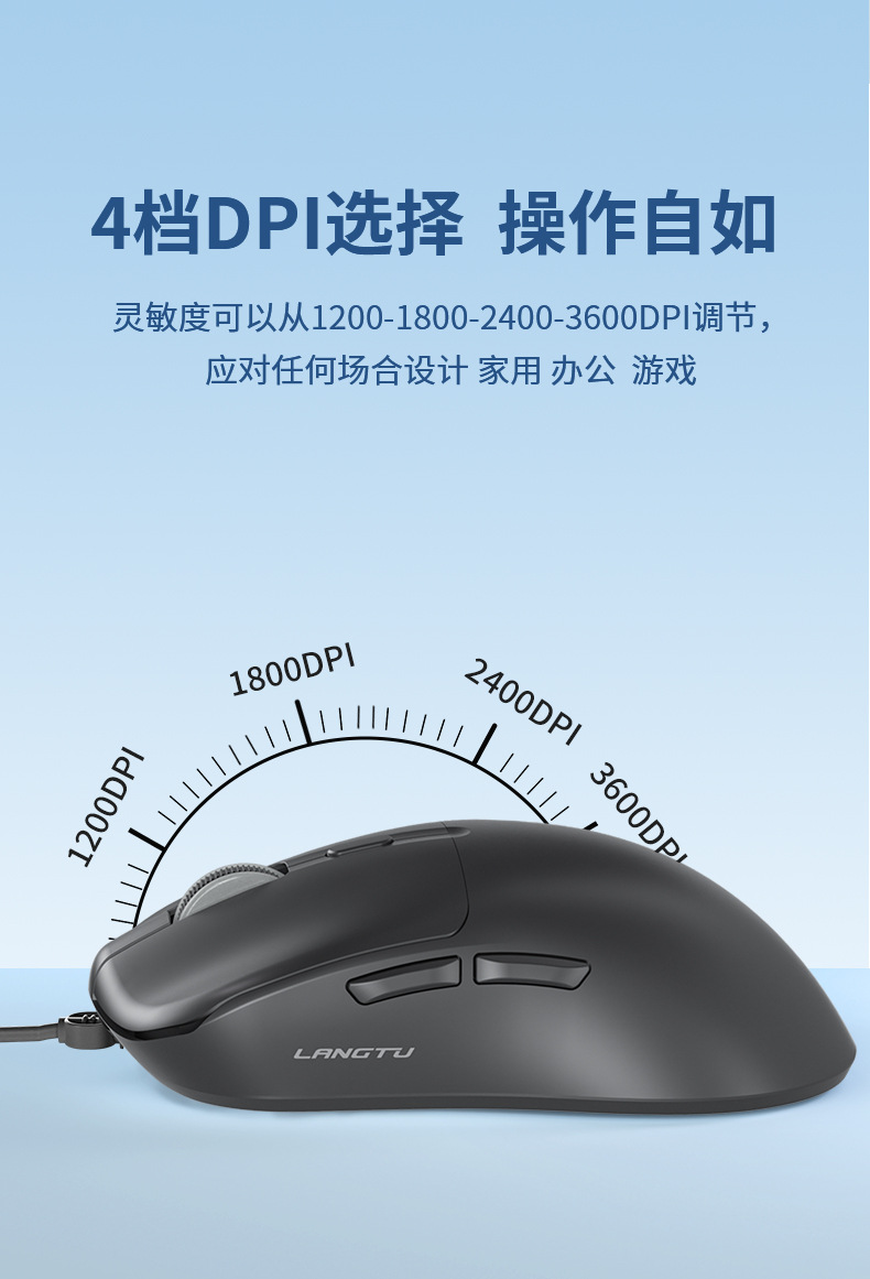 狼途T6鼠标静音三模电脑笔记本台式鼠标便携耐用办公光电有线鼠标