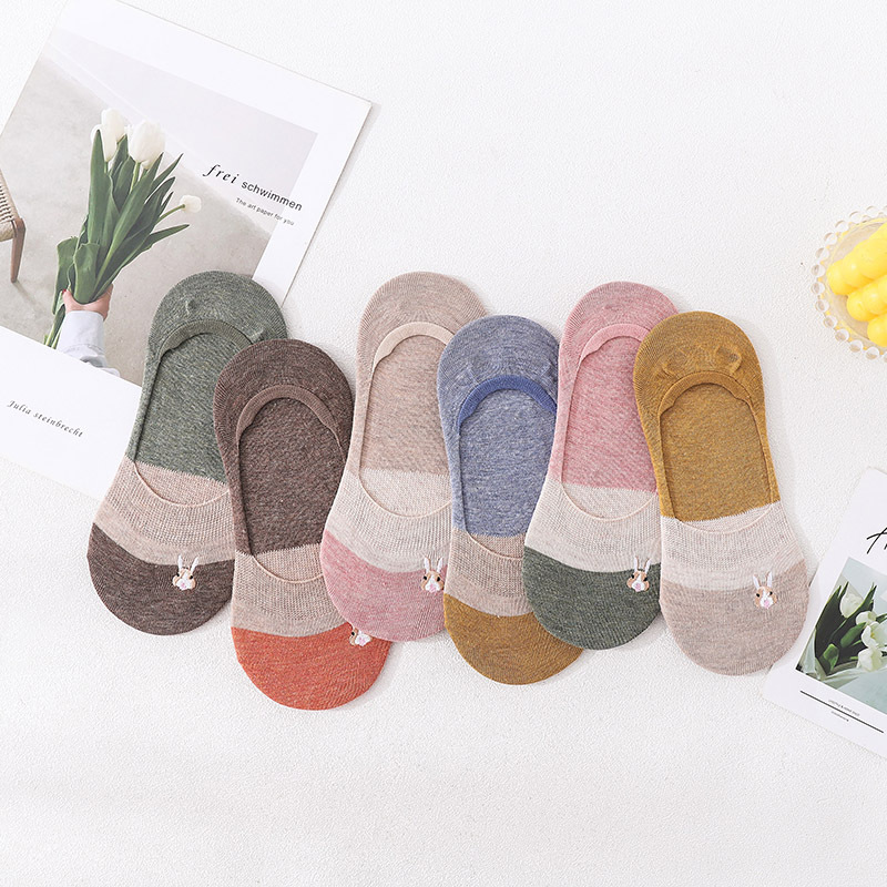 2021 패션 봄과 여름 얇은 여성용 양말에 보이지 않는 통기성 일본 대학 패션과 일치하는 새로운 토끼 색상스토어 가기