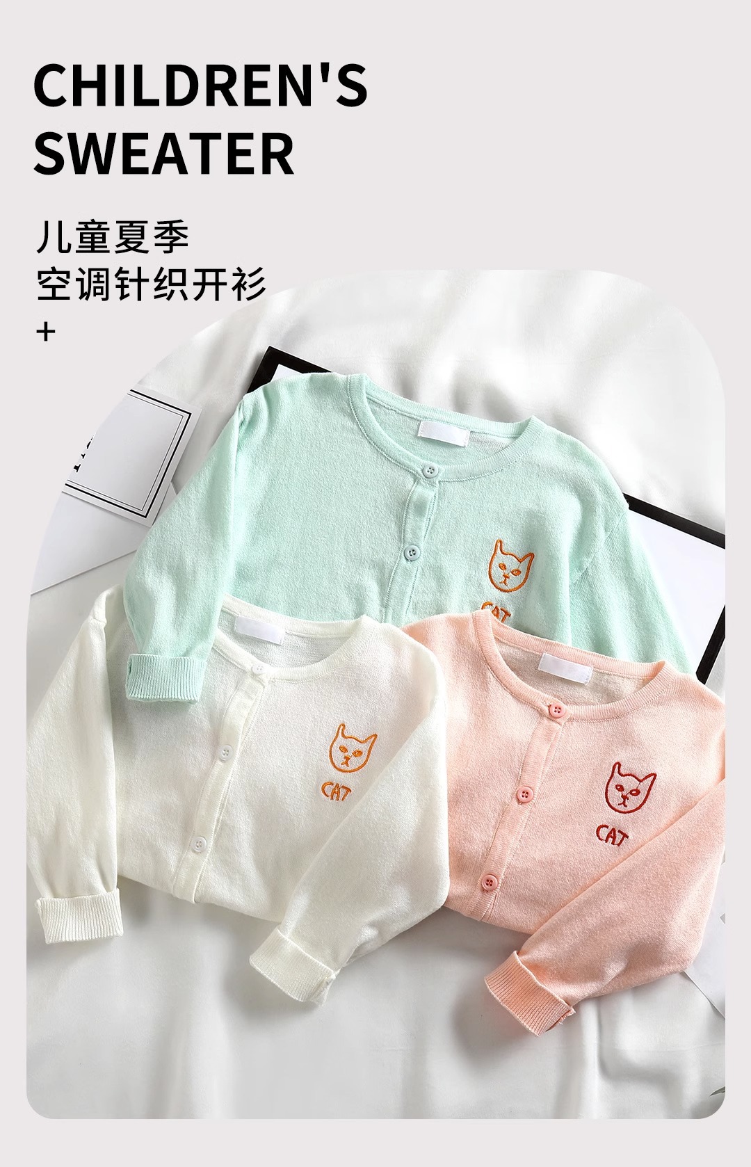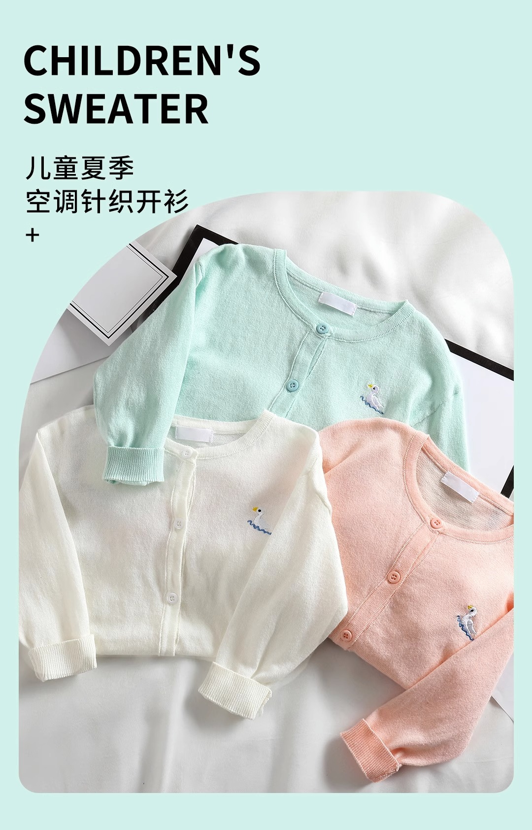 어린이 카디건 소년과 소녀를위한 여름 얇은 니트 스웨터 어린이 아기 태양 보호 의류 에어컨 셔츠 재킷