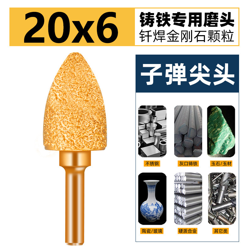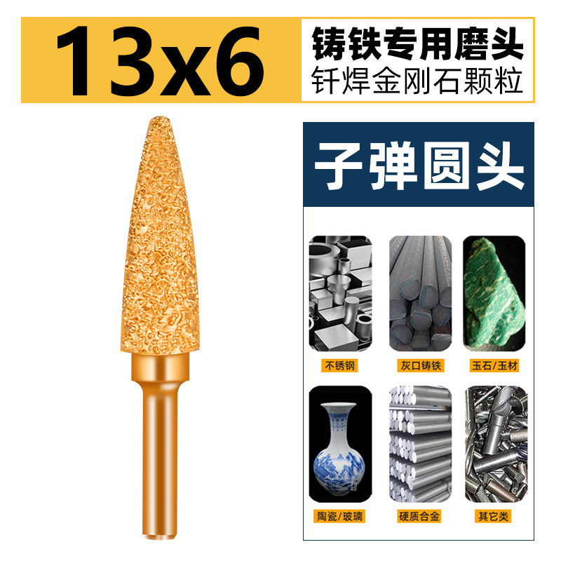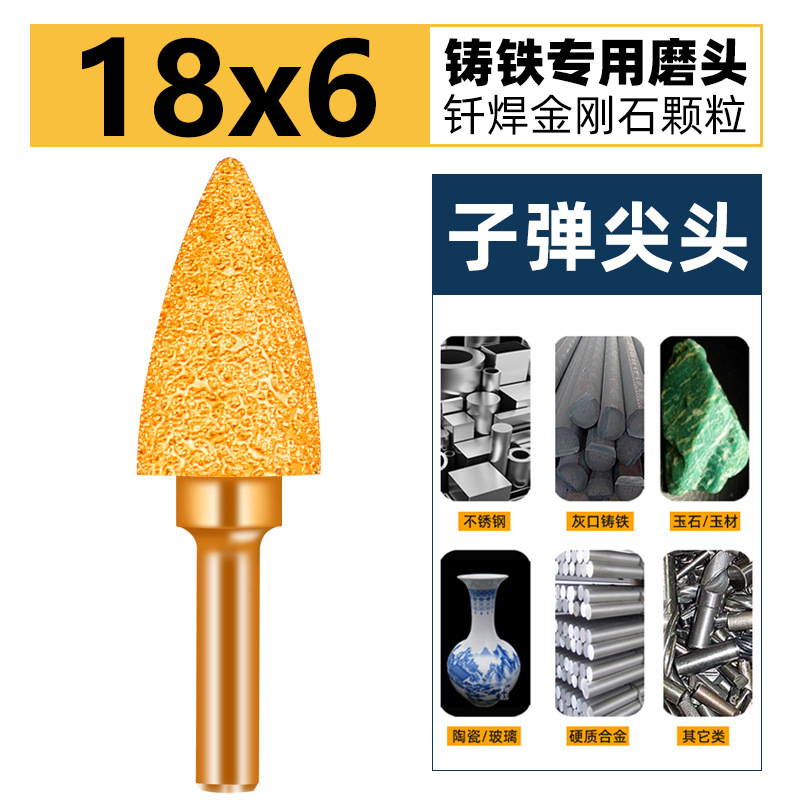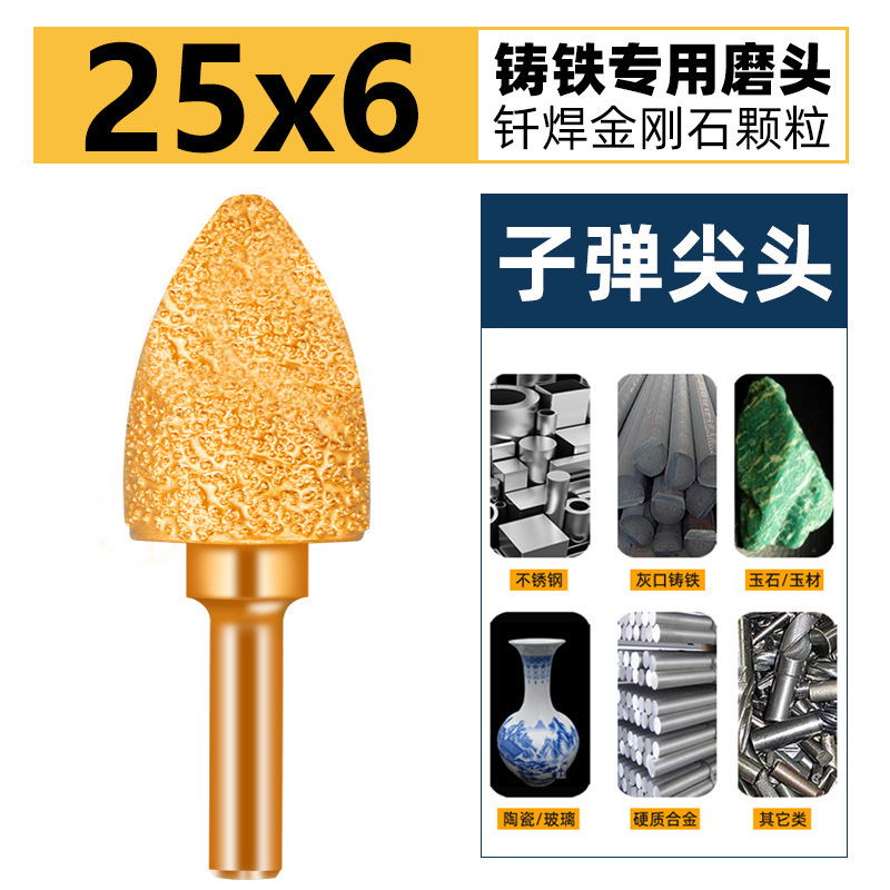 子弹头金刚石磨头钎焊磨棒铸铁打磨头6mm柄研磨15抛光金刚砂钻头