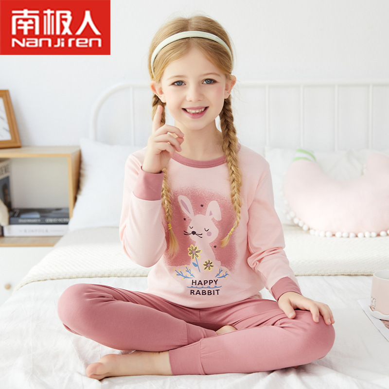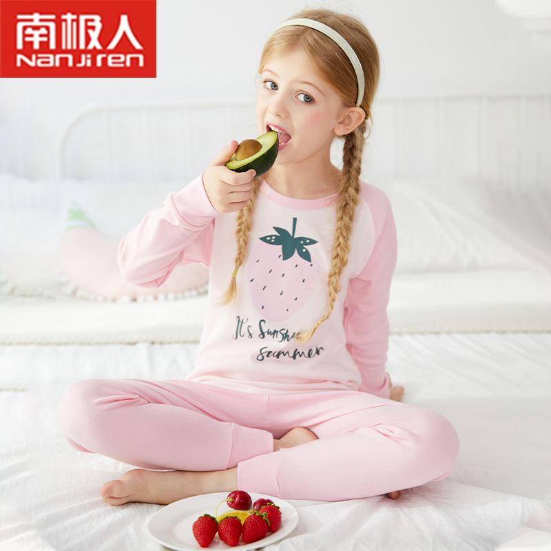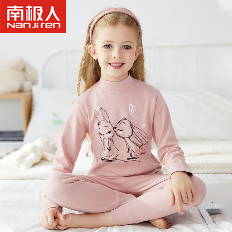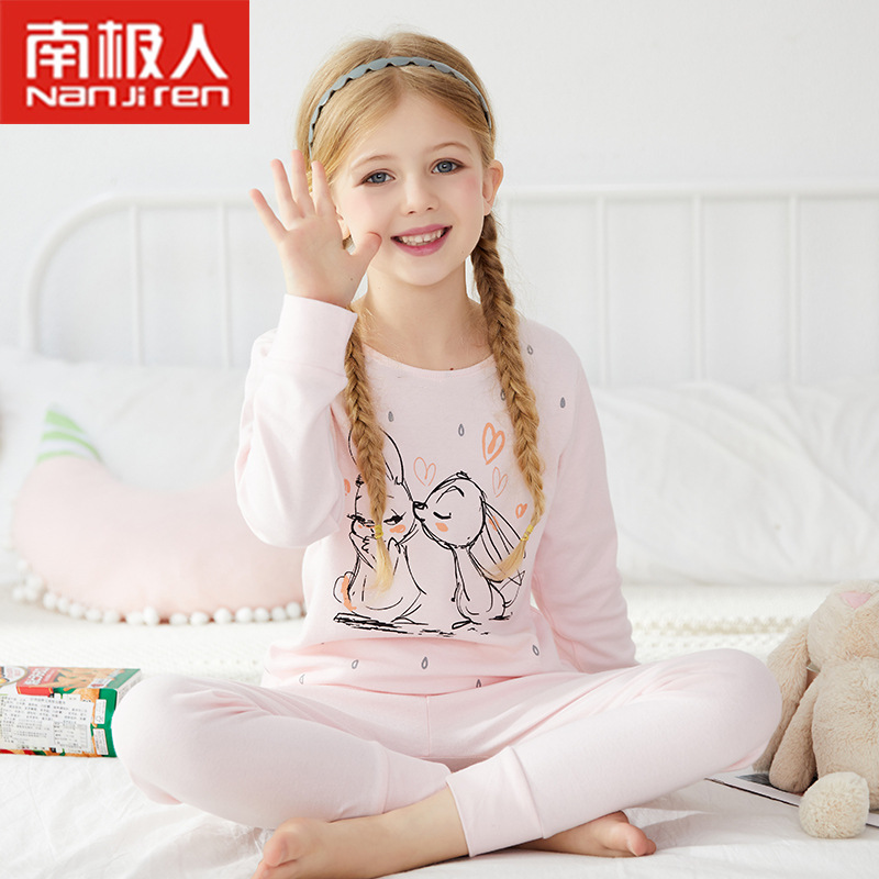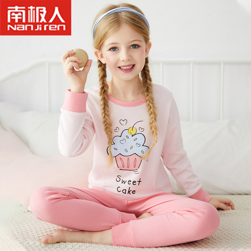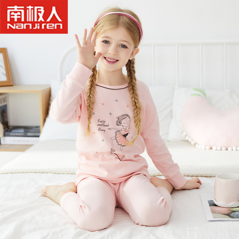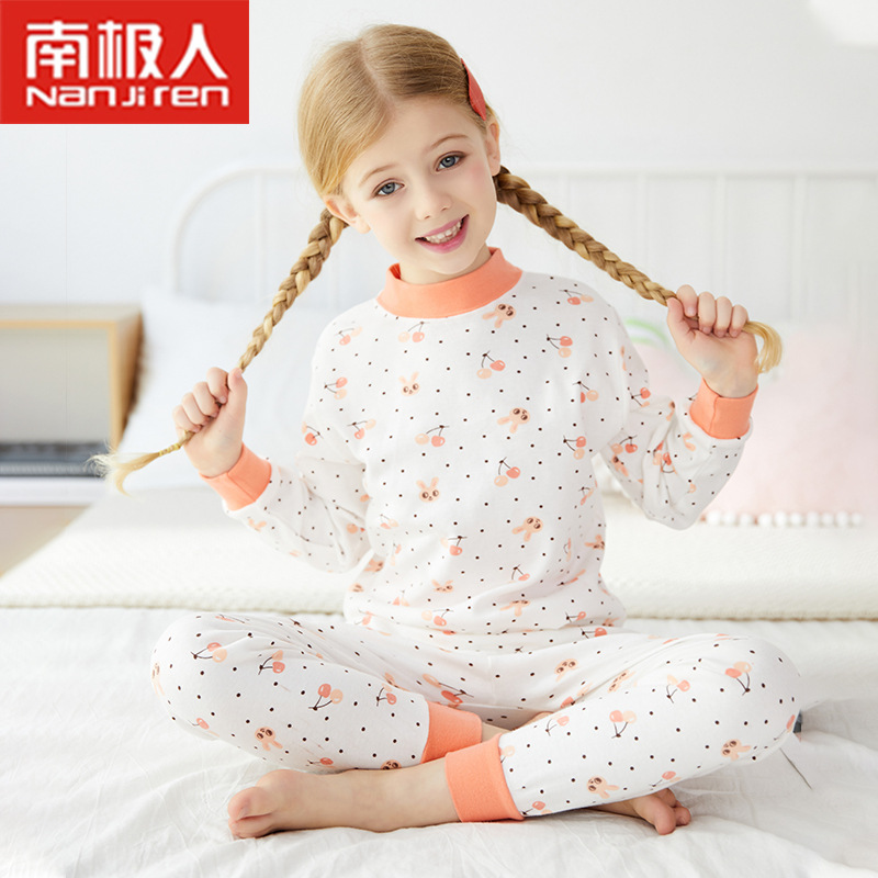 2021 어린이 속옷 세트 면 스웨터 여아 잠옷 가을과 겨울 열 속옷 아기 가을 옷 긴 바지 세트스토어 가기