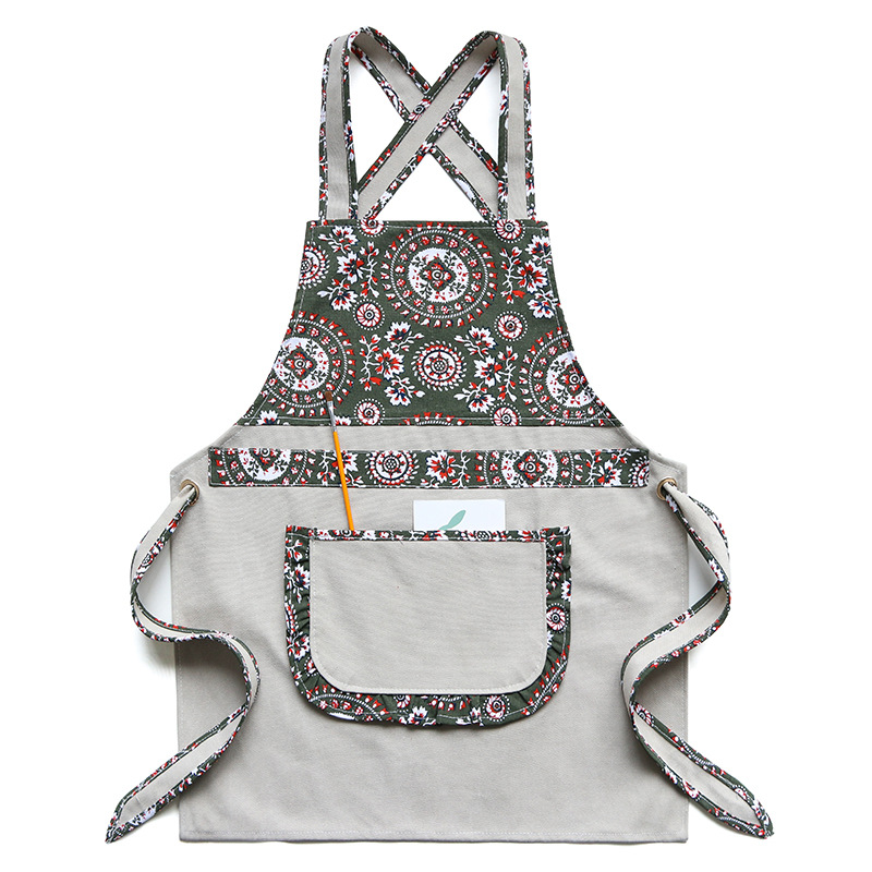 앞치마 여성 로고 인쇄 데님 우유 차 가게 바리 스타 화가 홈 주방 요리 이발사 작업복 남성
