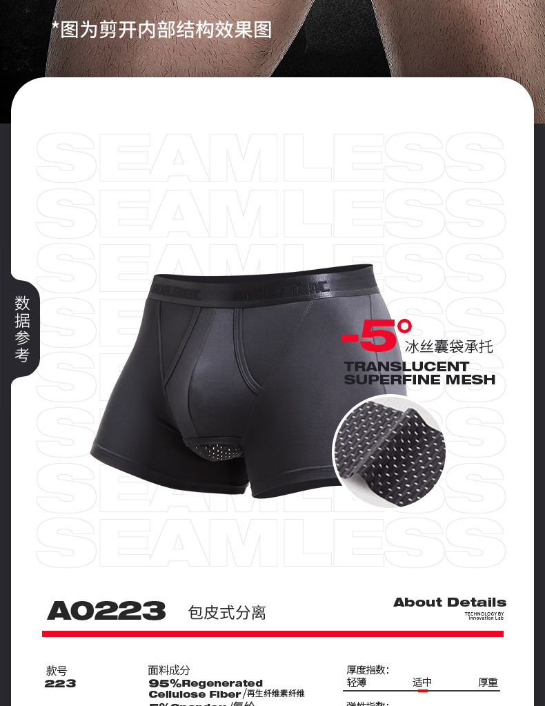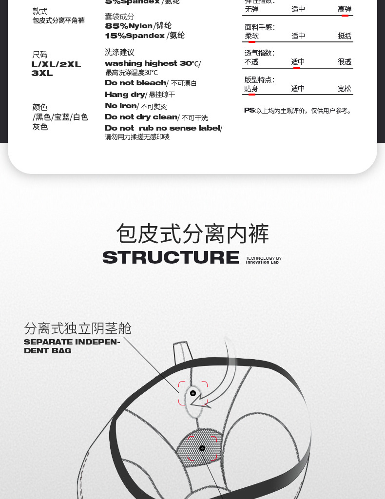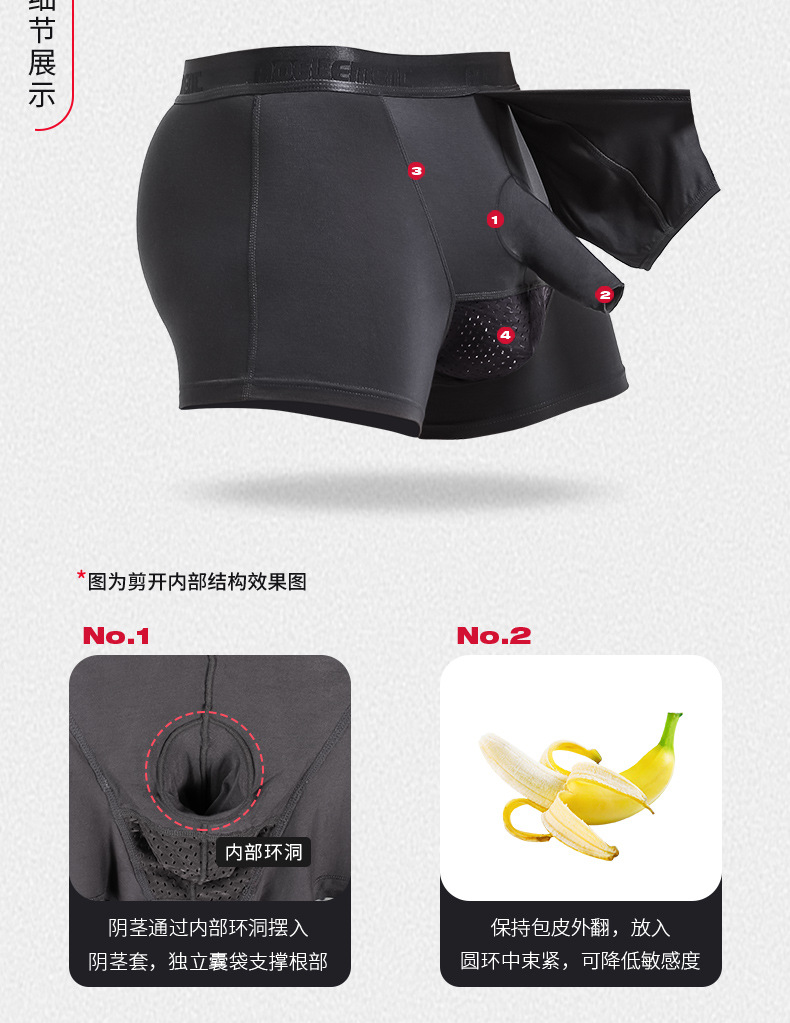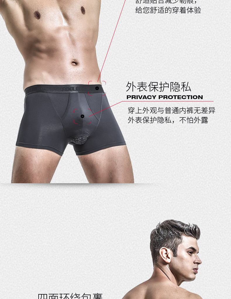 남성용 속옷, 남성용 포피 총알 스타일 분리형 길이 조절 반바지, 음낭 지지대, 남성용 복서 팬티