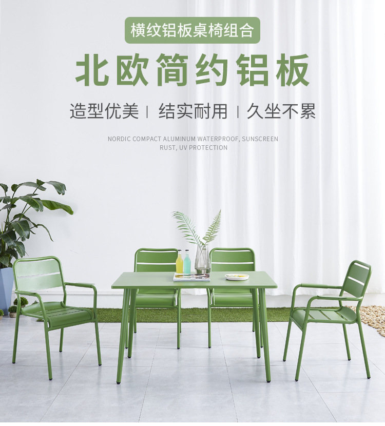야외 테이블과 의자 알루미늄 합금 야외 의자 야외 식탁 및 의자 카페 우유 차 가게 외부 테이블과 의자 세트 조합