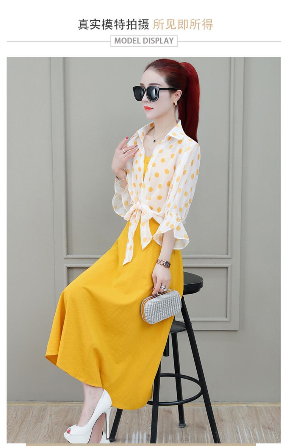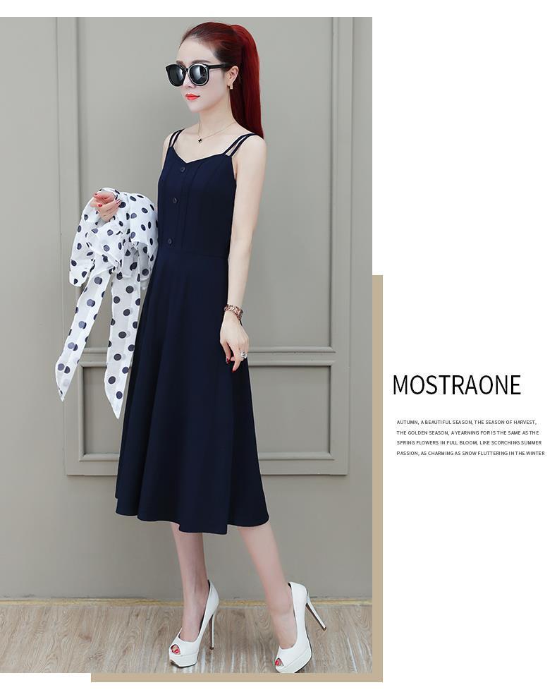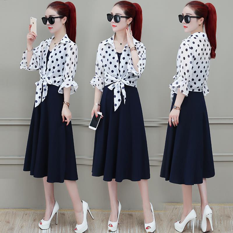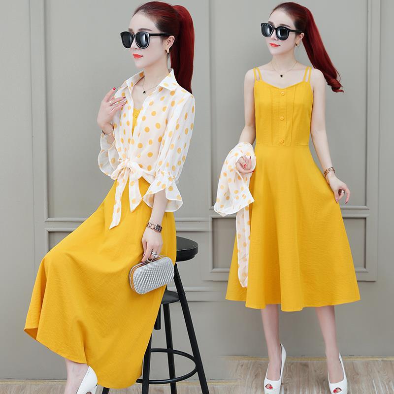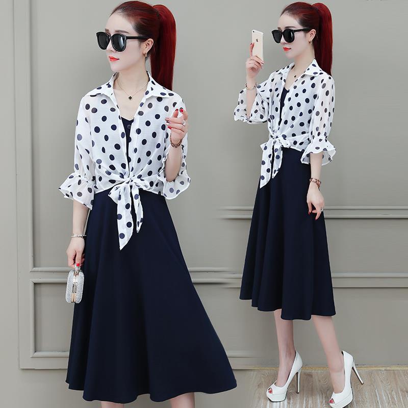 2026년 여름 신상품 도트무늬 숄탑, 자외선 차단 아우터, 페어리 스타일 중간 길이의 멜빵 원피스 투피스 세트스토어 가기