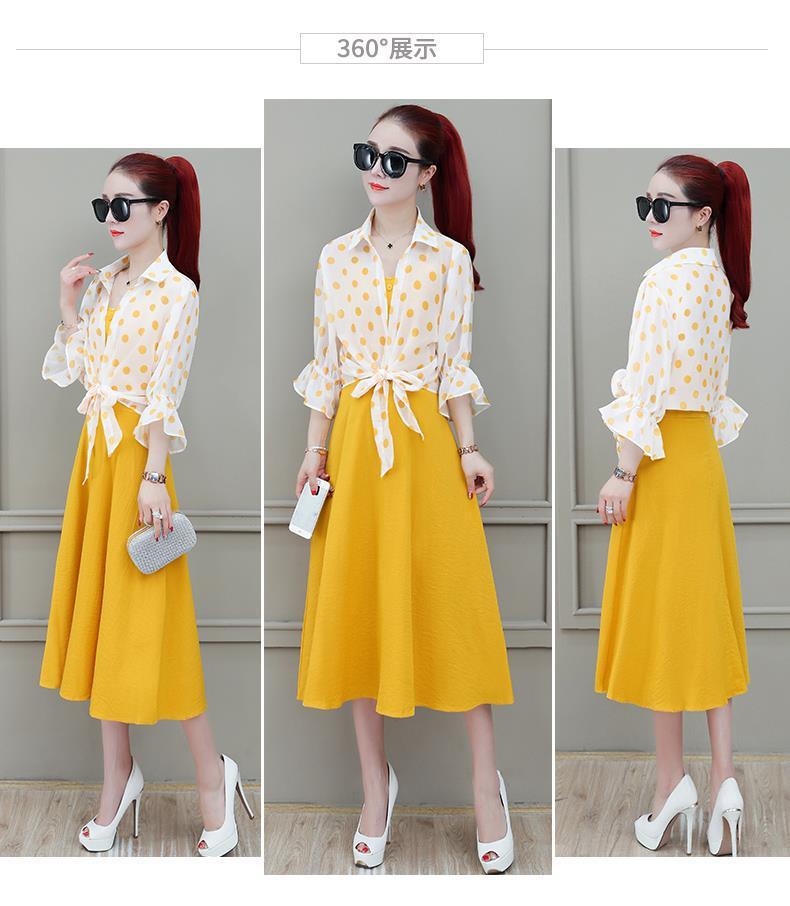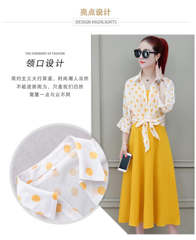 2026년 여름 신상품 도트무늬 숄탑, 자외선 차단 아우터, 페어리 스타일 중간 길이의 멜빵 원피스 투피스 세트