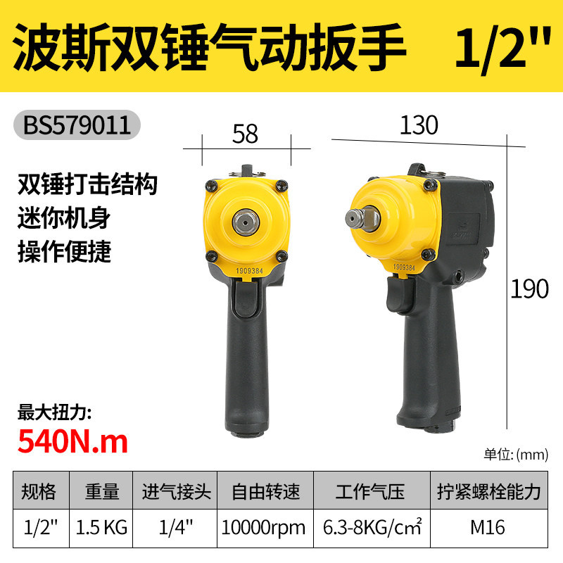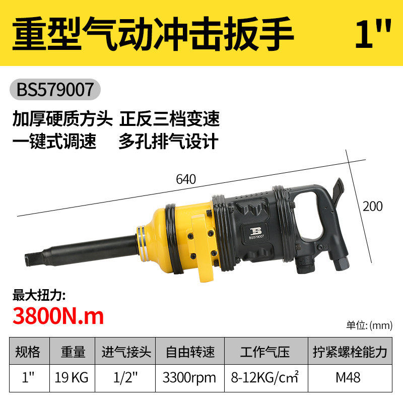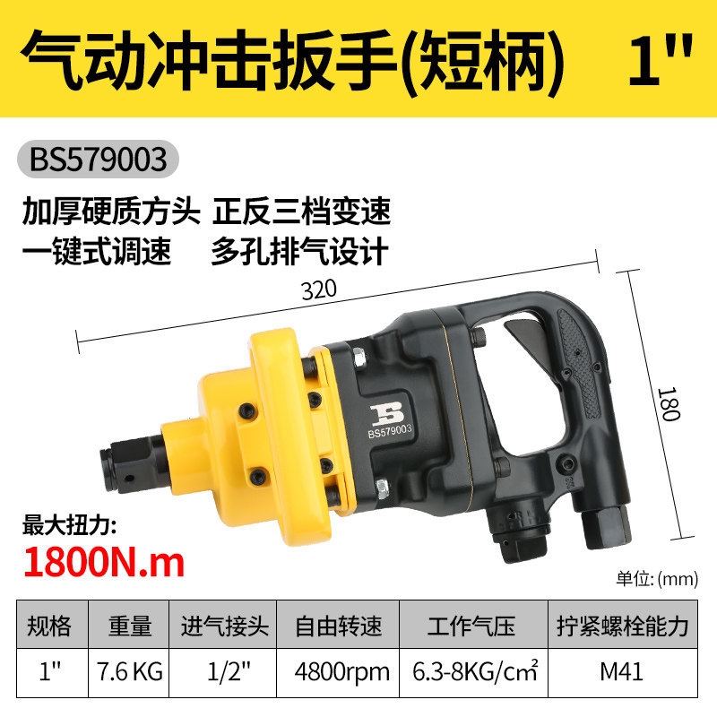 • 1인치 공압 임팩트 렌치(짧은 손잡이) 1800N.m BS579003