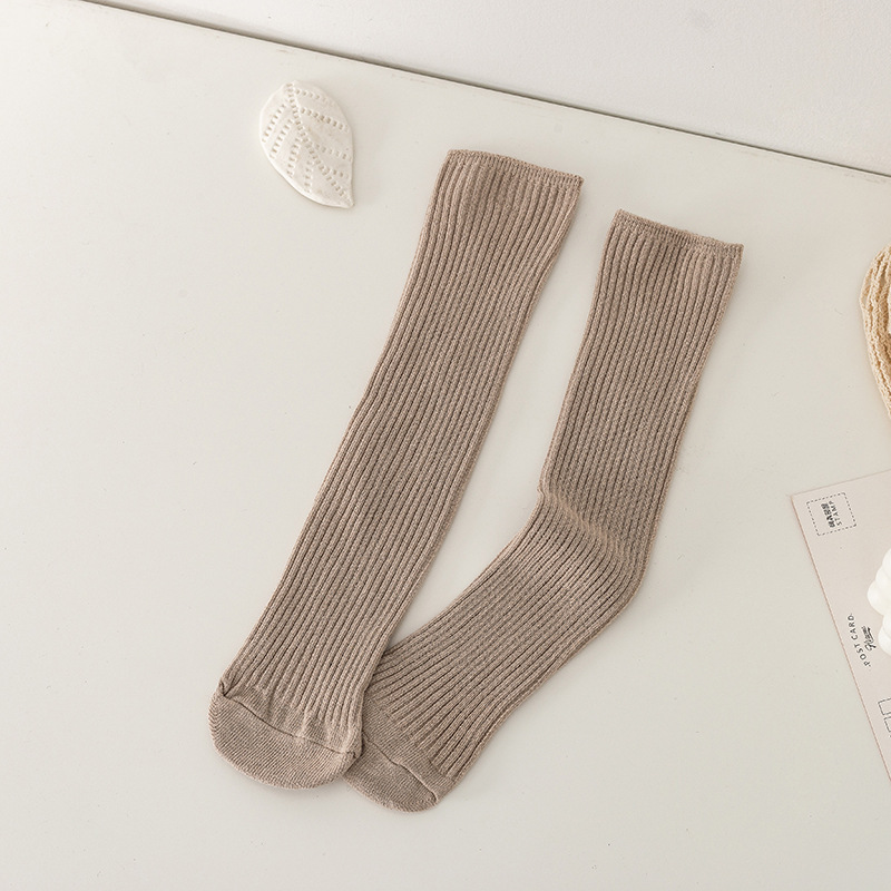 어린이 종아리 양말 쌓인 양말 여아 빗질 면 스트레이트 플레이트 미드 양말 단색 심플 비 굽 아기 양말