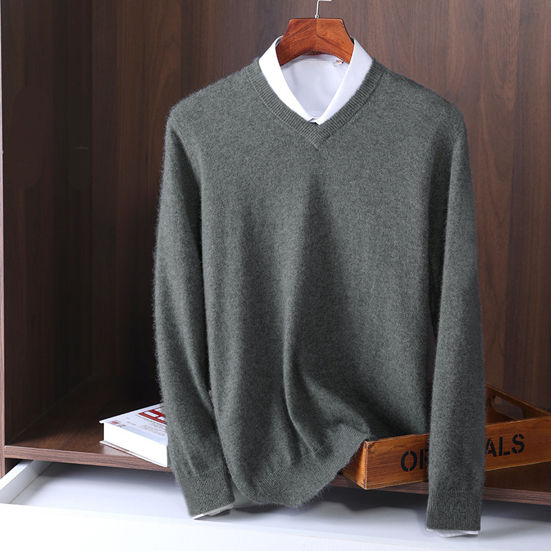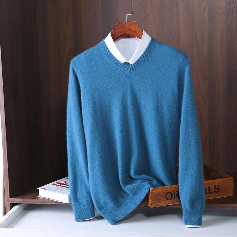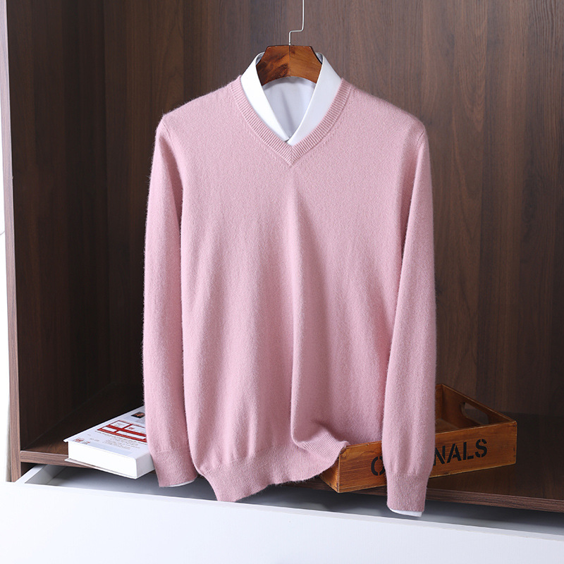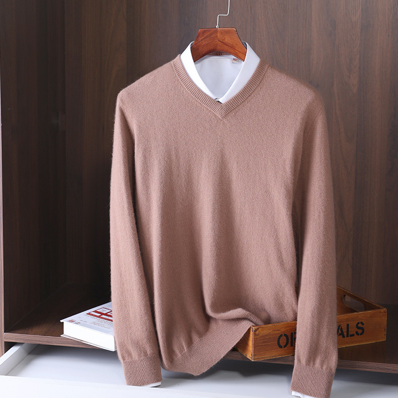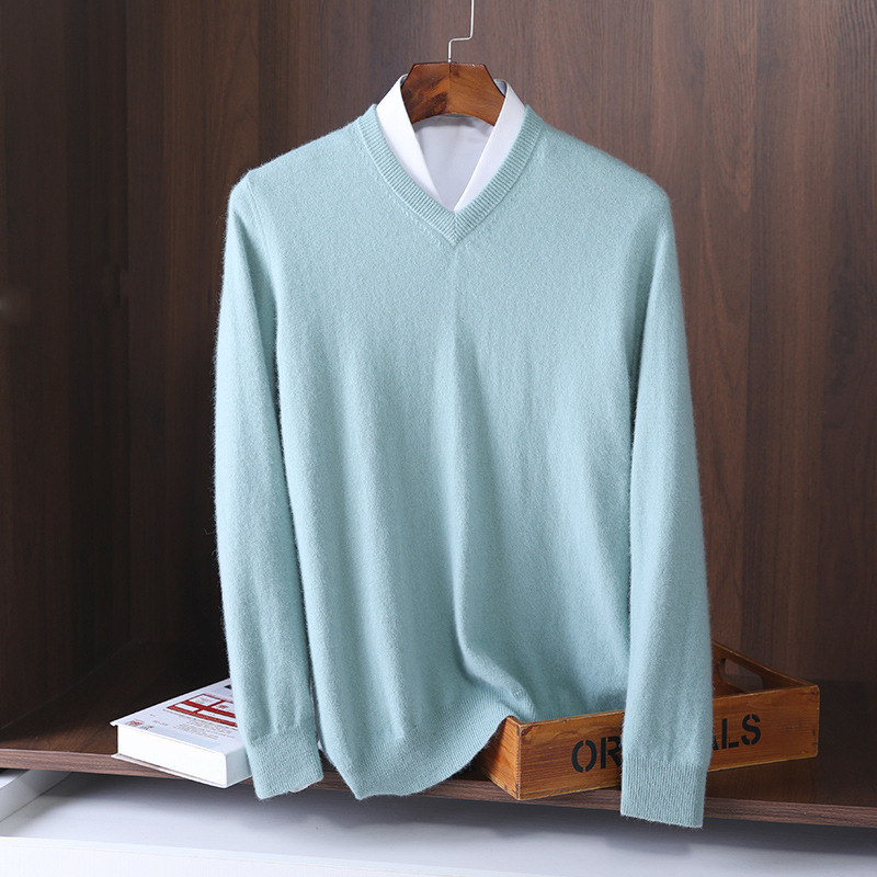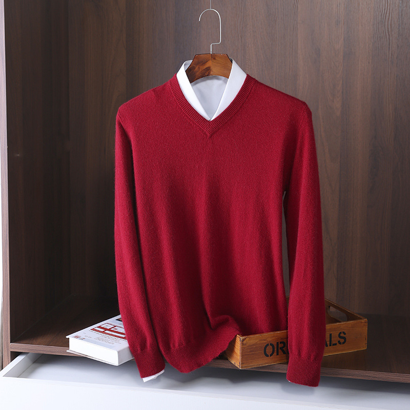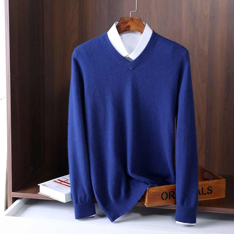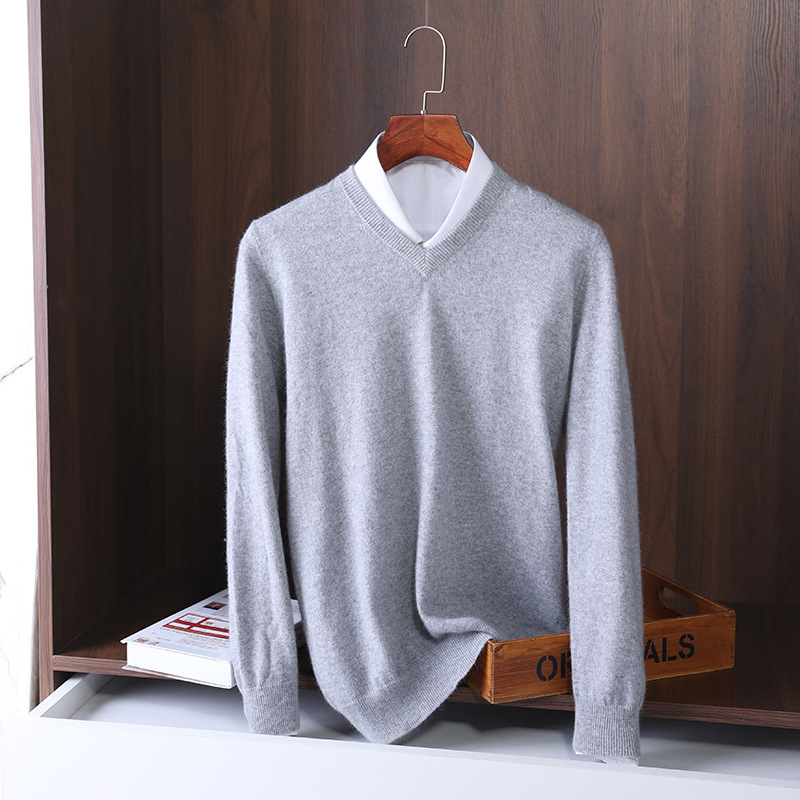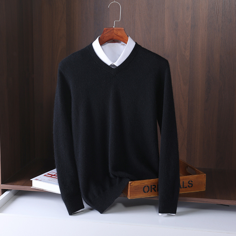 가을과 겨울 새 남자 스웨터 라운드 넥 V-넥 비즈니스 니트 셔츠 단색 긴 소매 느슨한 풀오버 캐주얼 베이스 셔츠
