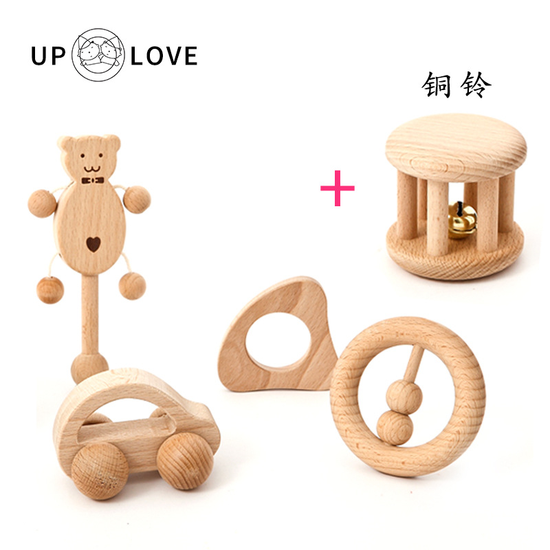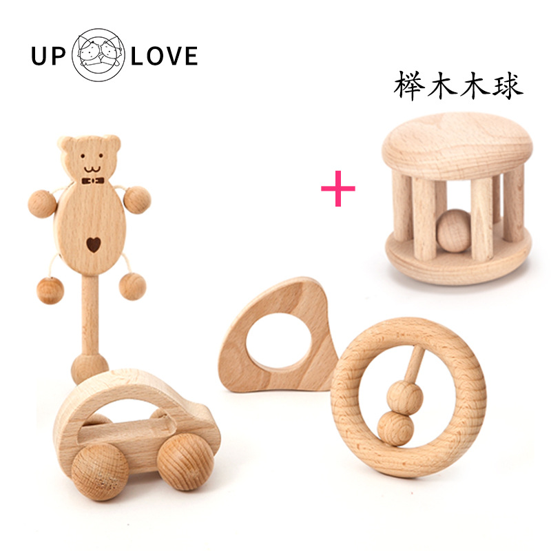 아기 만화 지능 개발 나무 옻칠없는 장난감 아기의 g아 먹는 어금니 딸랑이 어린이 선물 세트스토어 가기