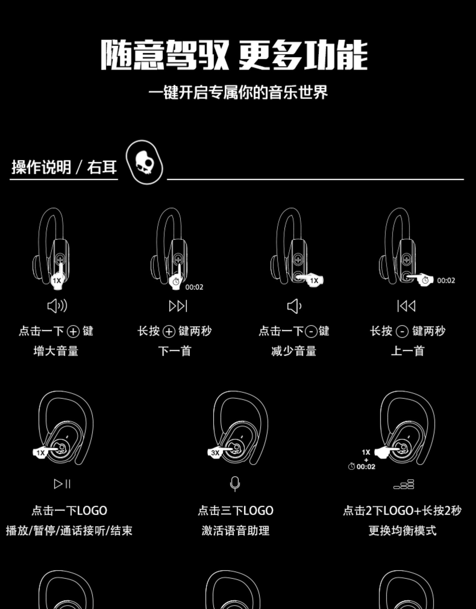 Skullcandy 푸시 울트라 스포츠 콩 진정한 무선 블루투스 실행 스포츠 헤드폰스토어 가기