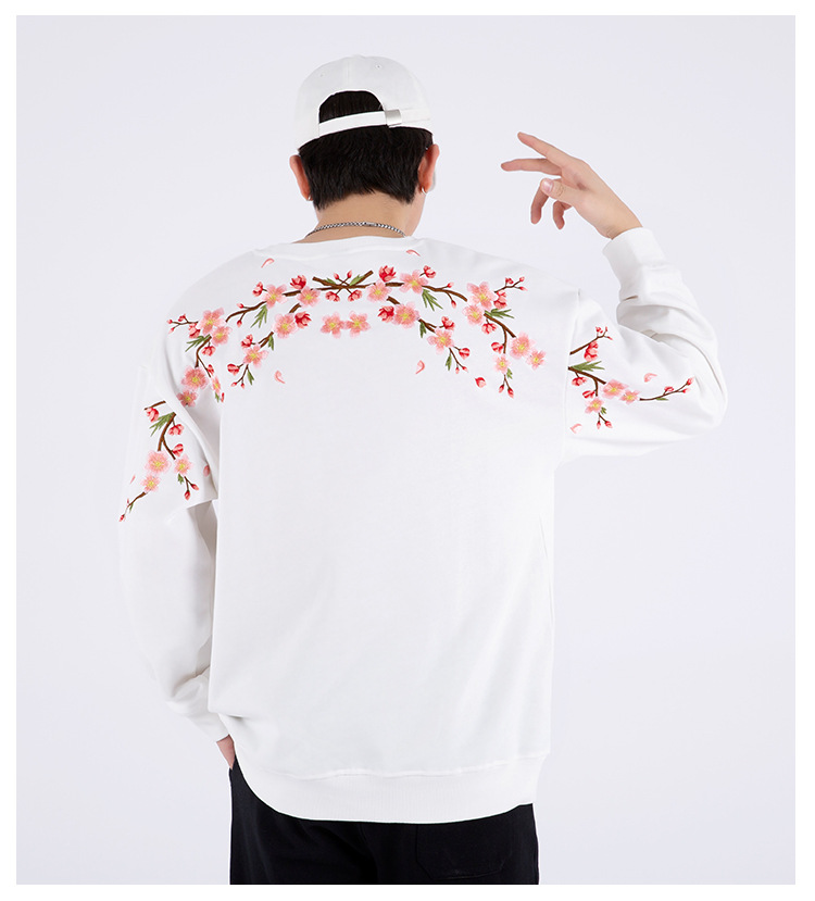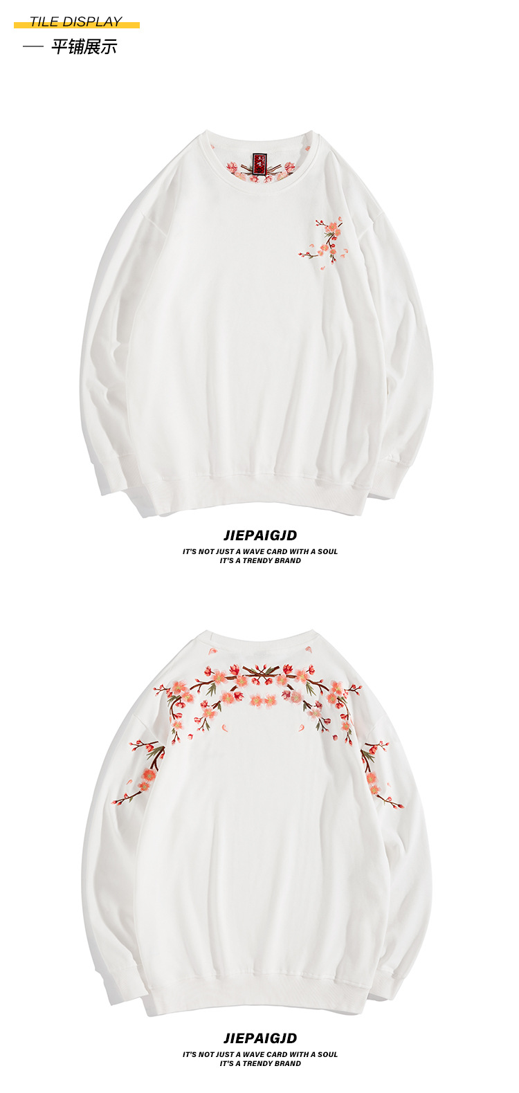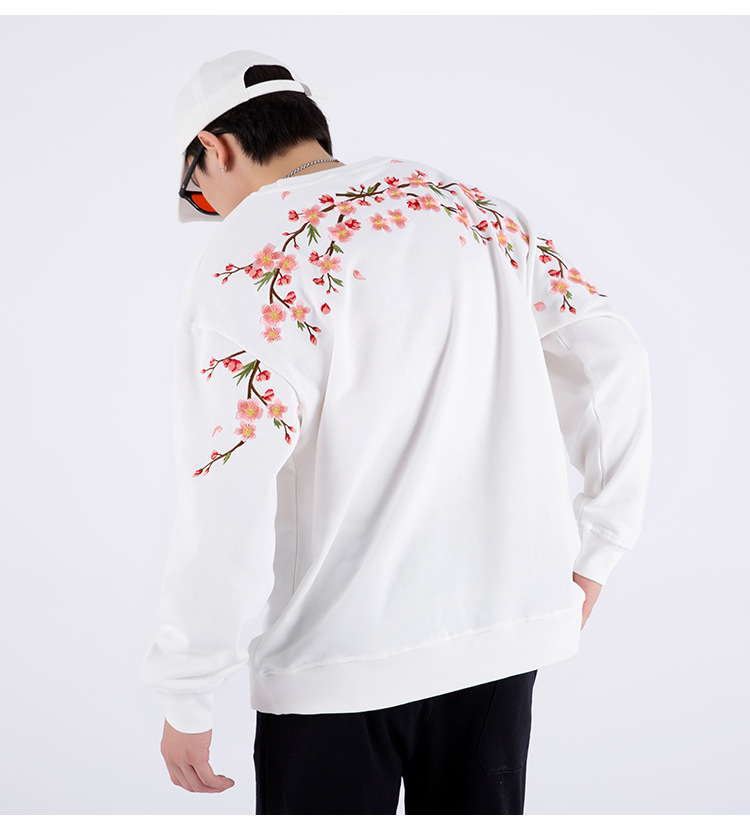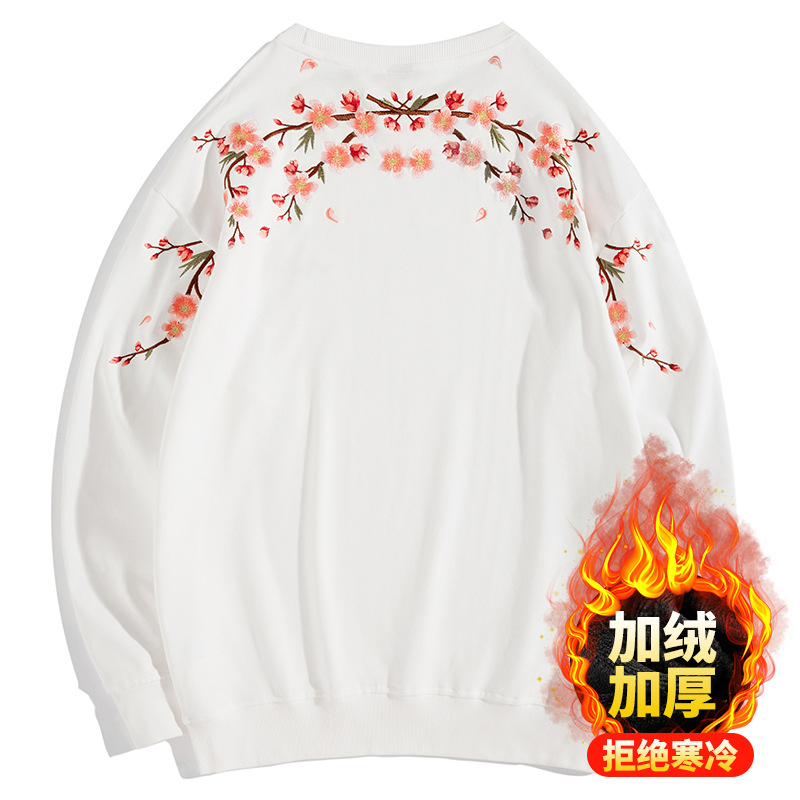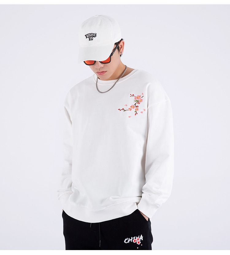 가을 겨울 신상품 대형 남성복, 중국 스타일 자켓, 트렌디 브랜드, 매화 자수 라운드넥 스웨트셔츠, 커플 및 학생용 트렌디 의류