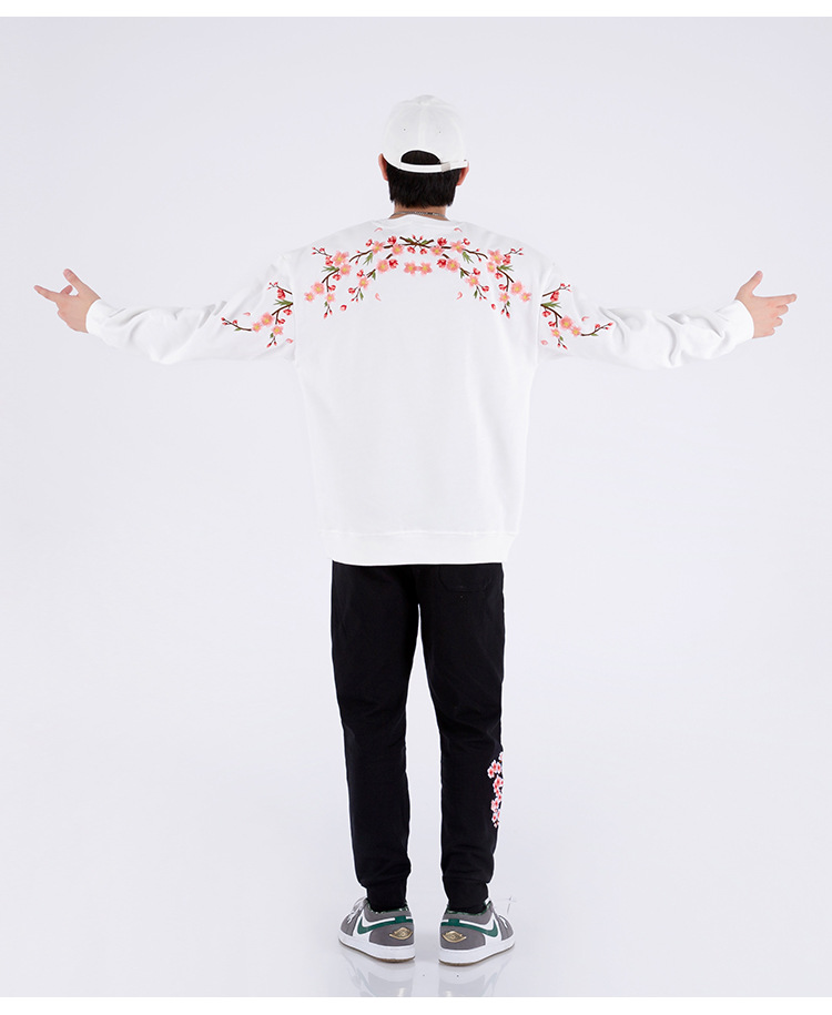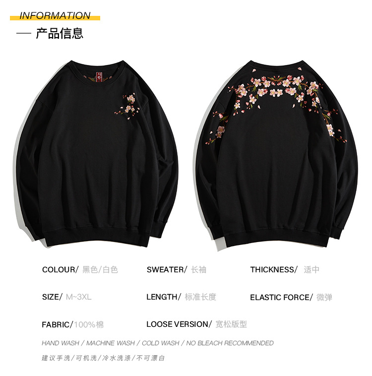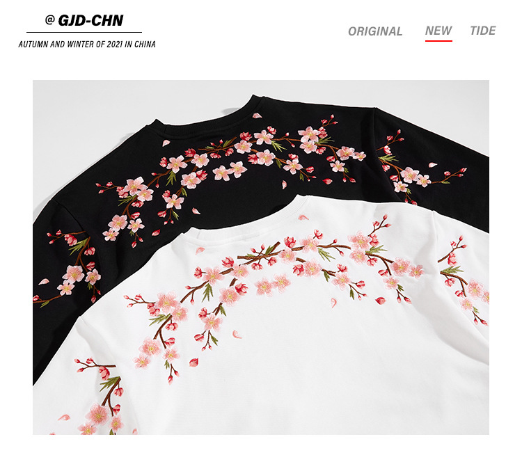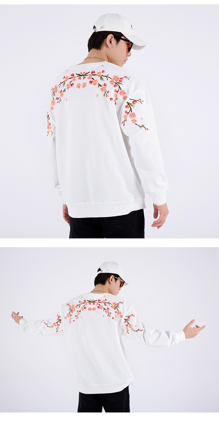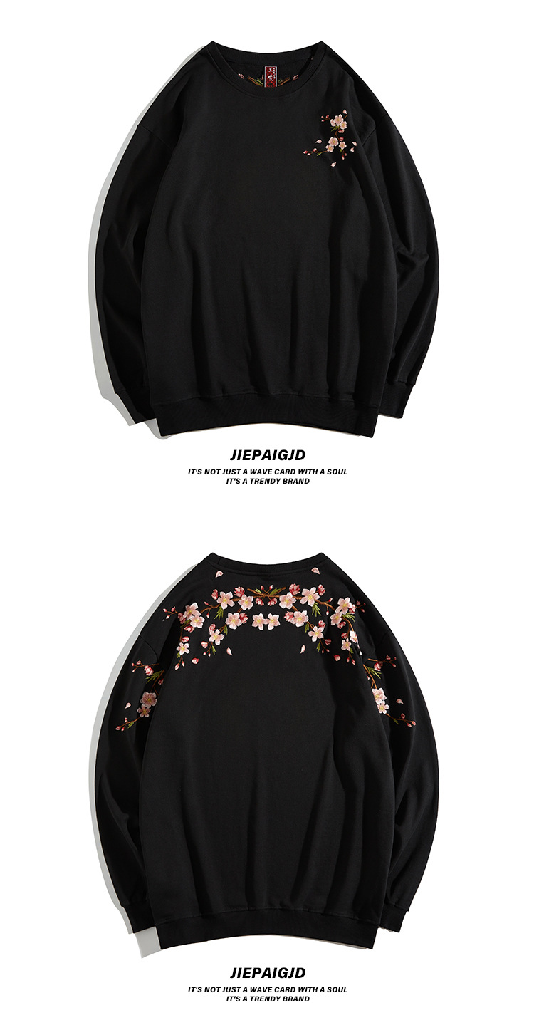 가을 겨울 신상품 대형 남성복, 중국 스타일 자켓, 트렌디 브랜드, 매화 자수 라운드넥 스웨트셔츠, 커플 및 학생용 트렌디 의류