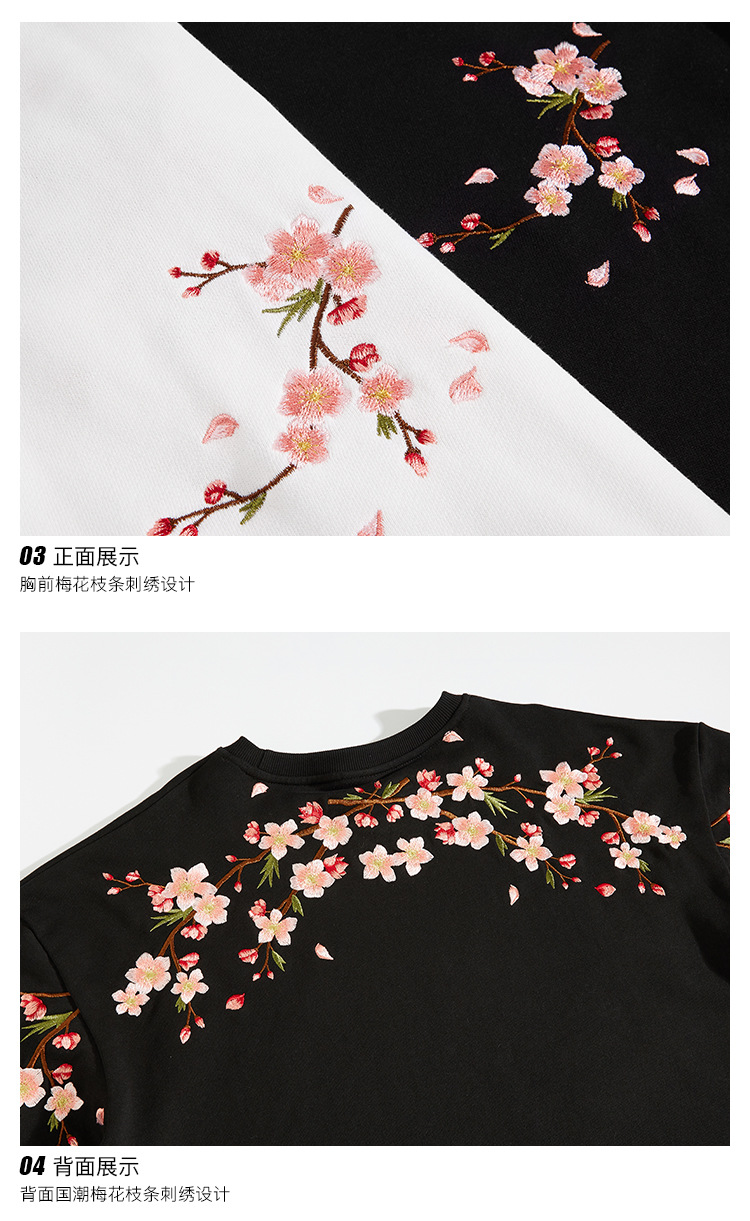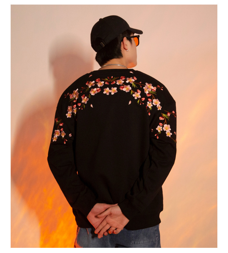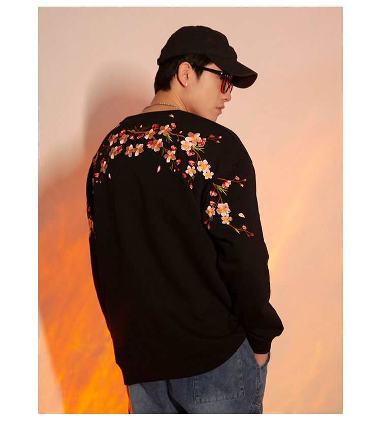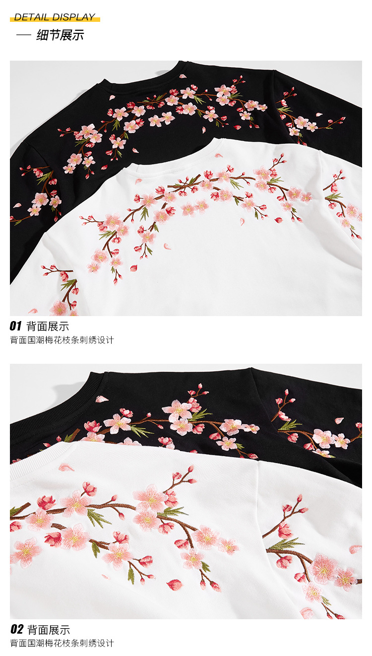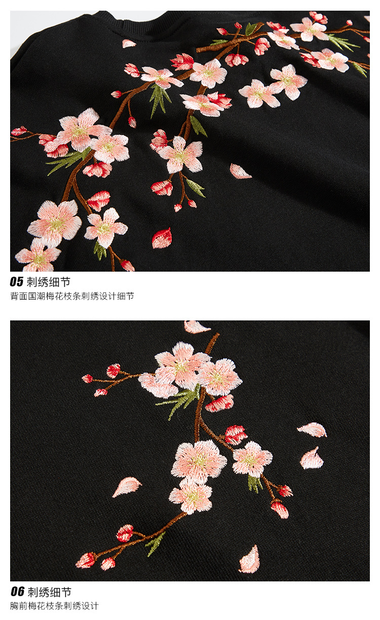 가을 겨울 신상품 대형 남성복, 중국 스타일 자켓, 트렌디 브랜드, 매화 자수 라운드넥 스웨트셔츠, 커플 및 학생용 트렌디 의류스토어 가기
