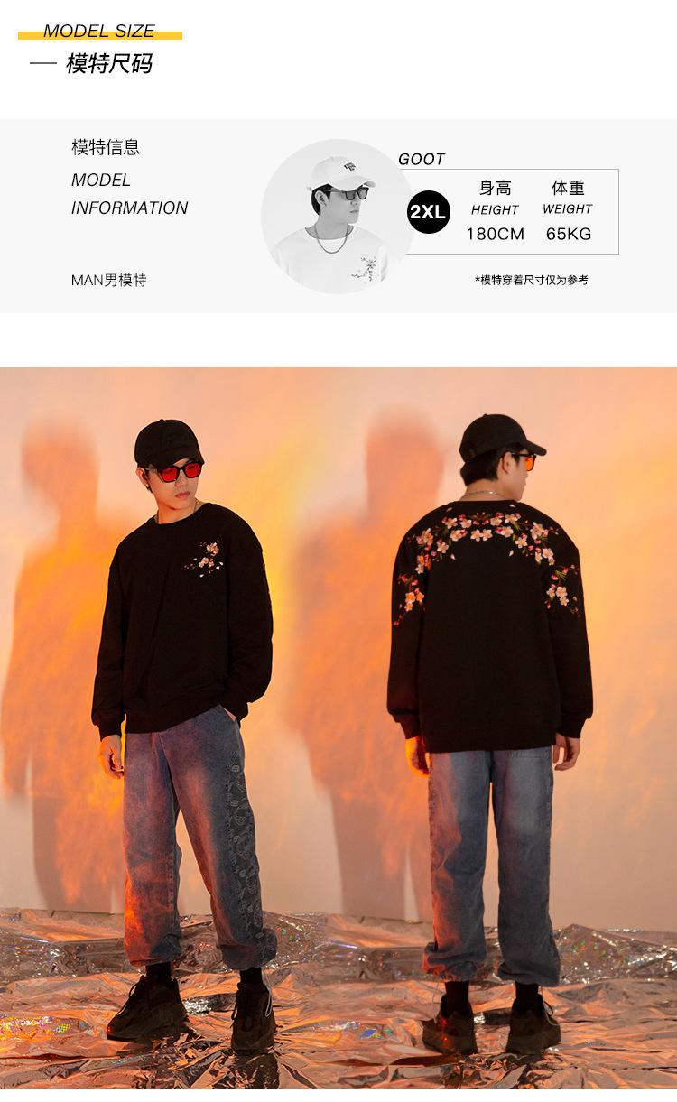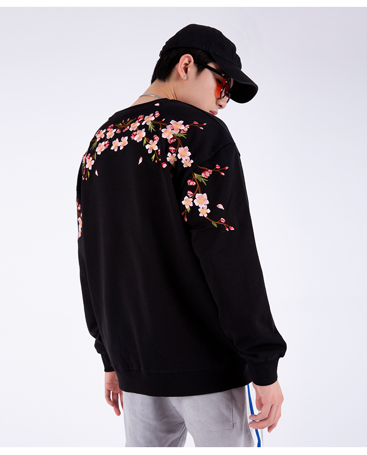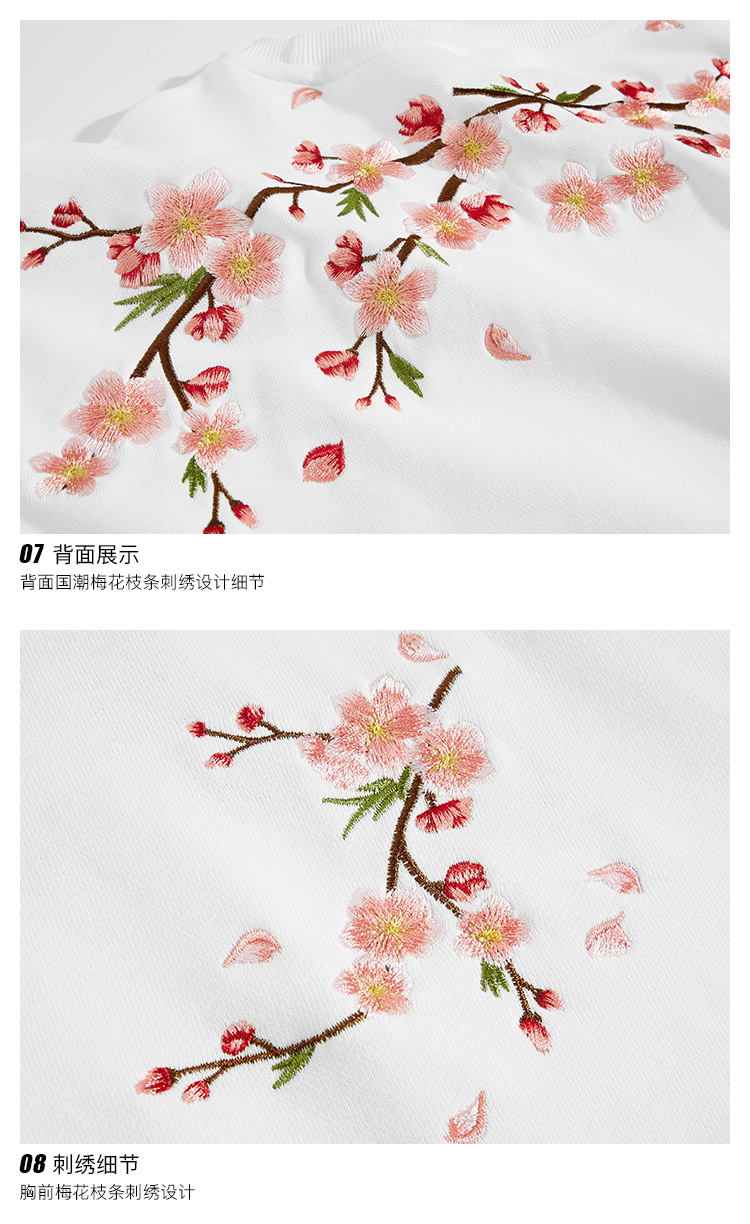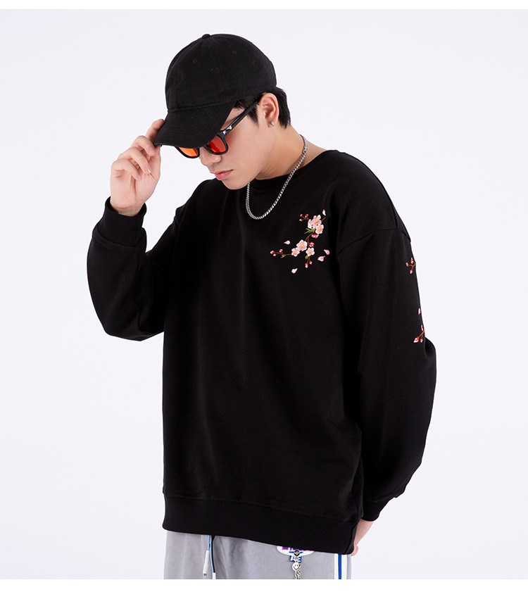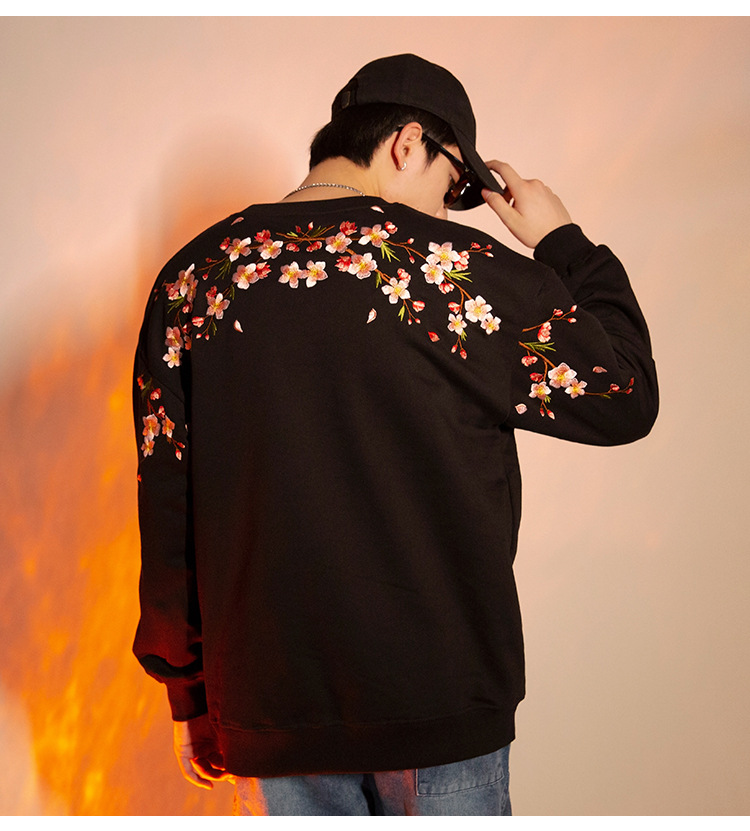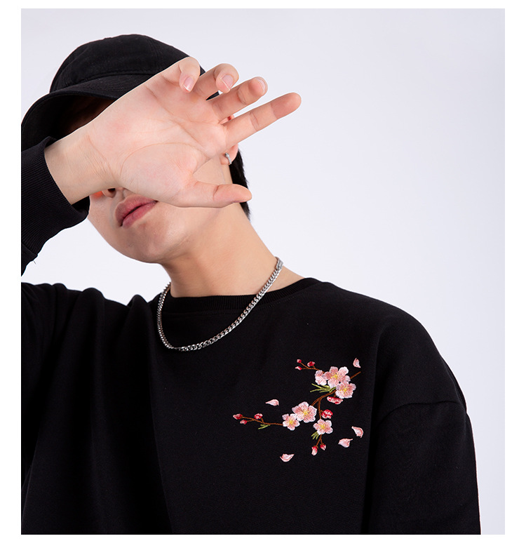 가을 겨울 신상품 대형 남성복, 중국 스타일 자켓, 트렌디 브랜드, 매화 자수 라운드넥 스웨트셔츠, 커플 및 학생용 트렌디 의류스토어 가기