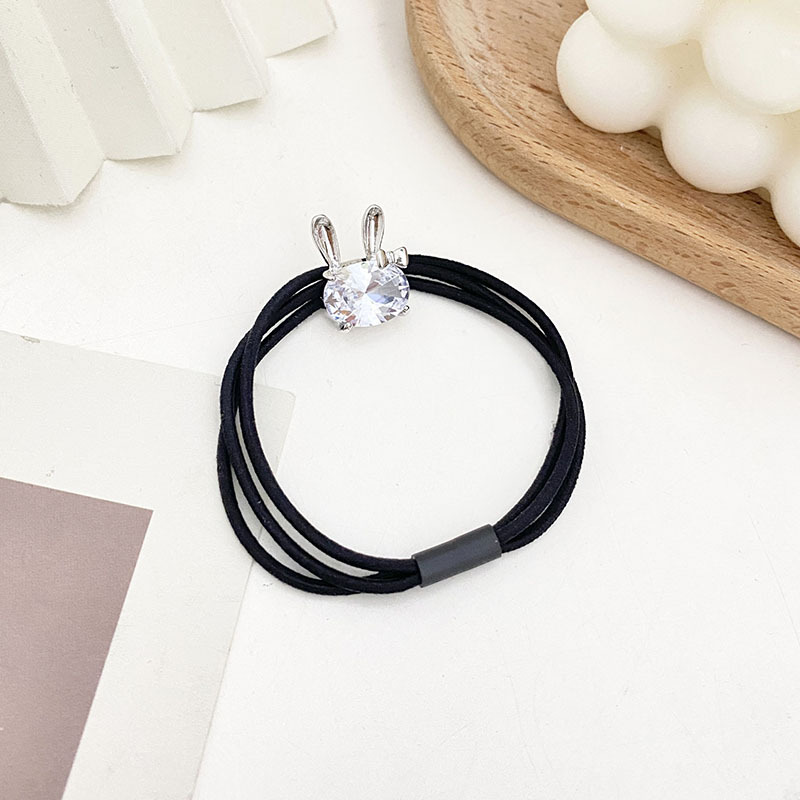 새로운 토끼 체리 나비 넥타이 더블 스트랜드 헤어 링 단색 지르콘 만화 고탄성 머리 끈 검은 모자스토어 가기