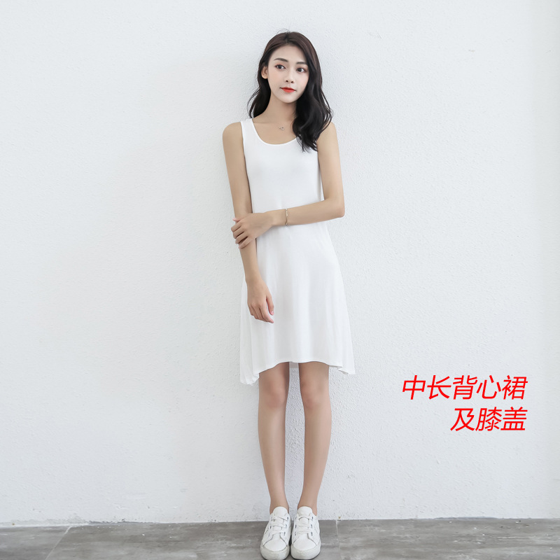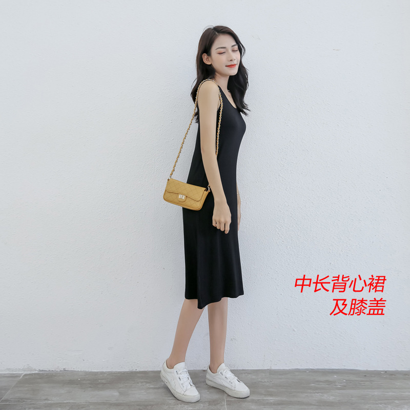Kim-Han Modal 중간 길이 슬링 조끼 스커트 베이스 셔츠 여성용 슬림핏 힙 랩 스커트 여름 블랙 인테리어 인스토어 가기