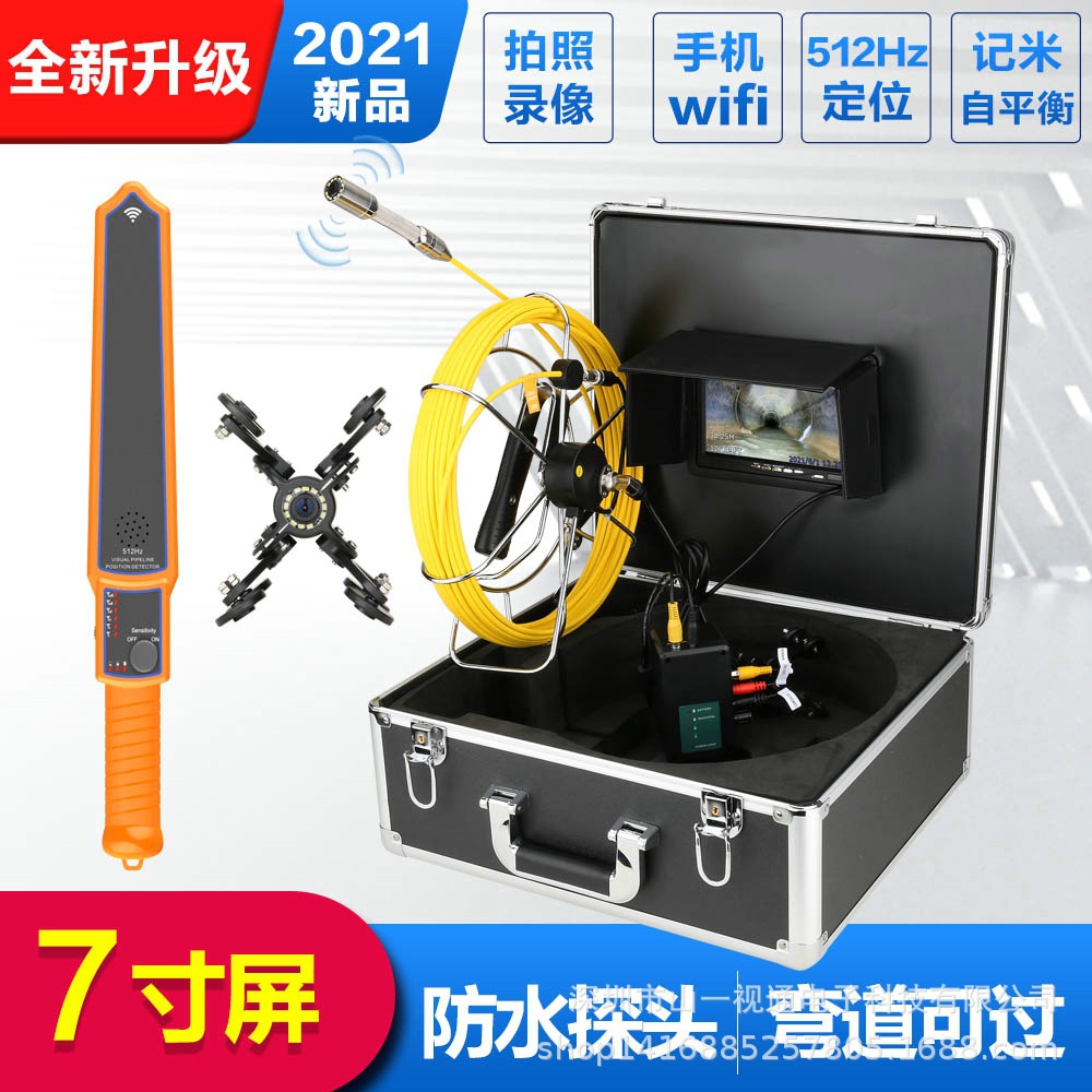 配置:摄像机内置自平衡与512HZ发射定位,512HZ接收器,7寸录像屏送8G卡,直径22mm不锈钢探头,高清1200线 ,镜头角度145度,20M/30M/40M/50M管道内窥镜线长可选,4500MA内置电池,带电量显示,12个白光灯亮度可调,带二个摄像头保护套。