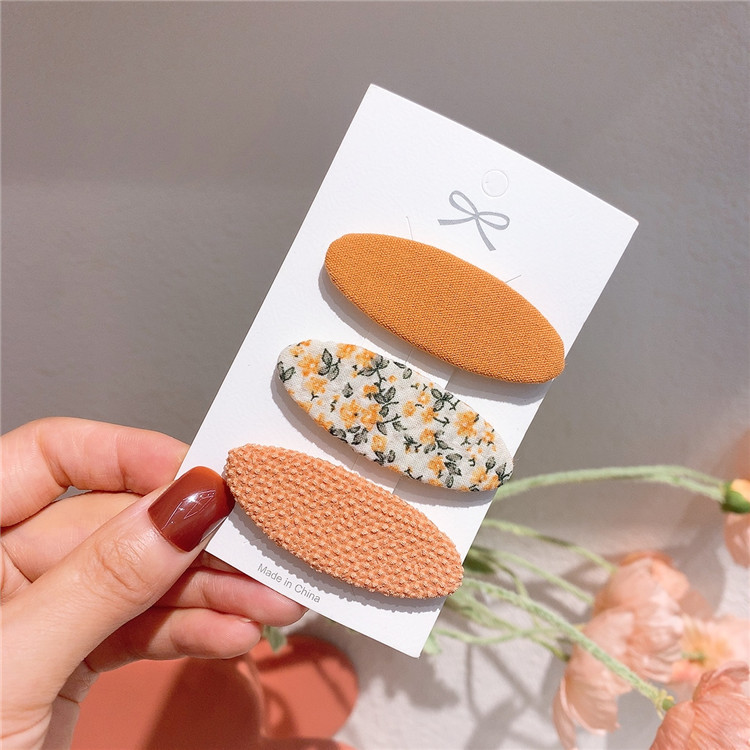 새로운 어린이 신선한 스타일 꽃 머리핀 소녀의 단색 패브릭 타원형 BB 클립 달콤한 깨진 머리 Liu 해변 클립스토어 가기