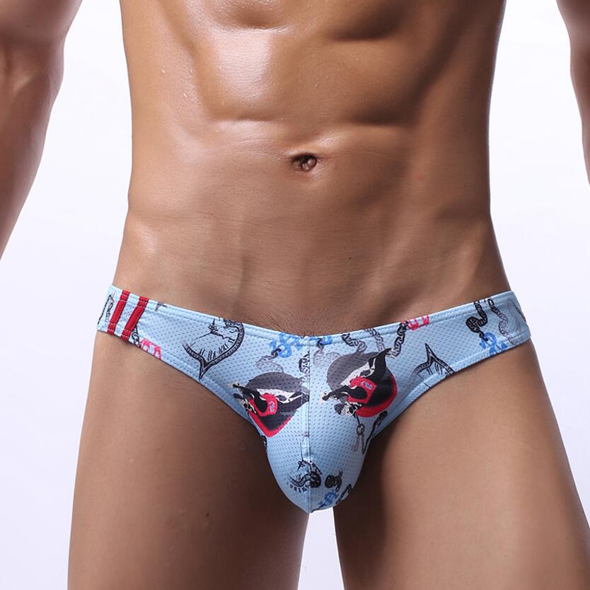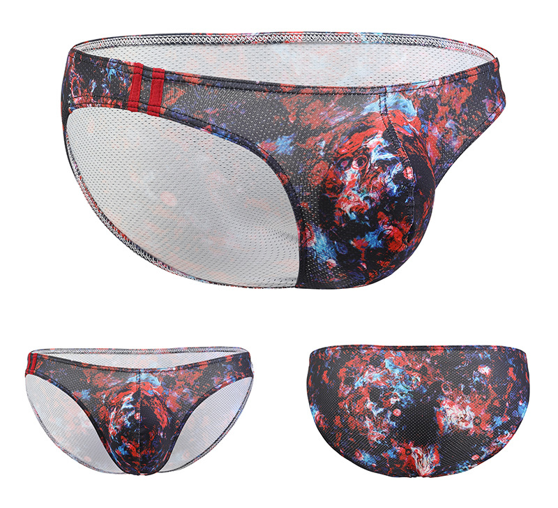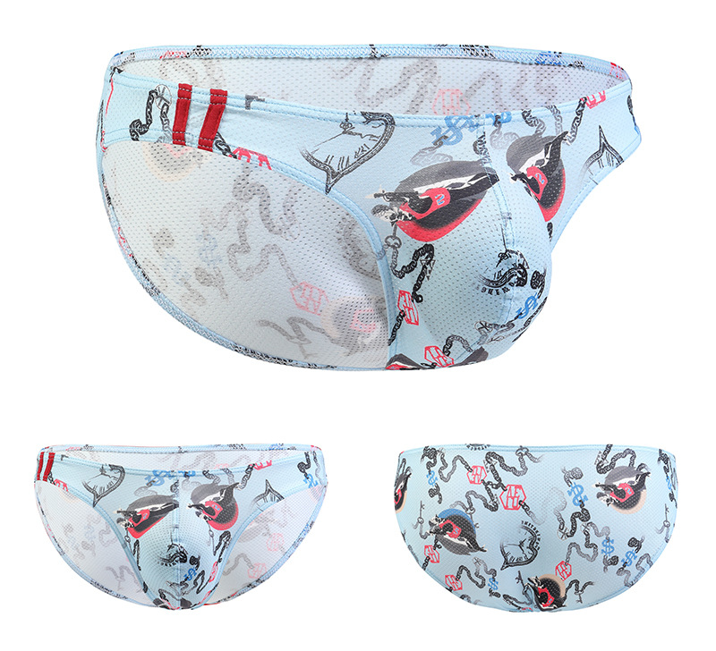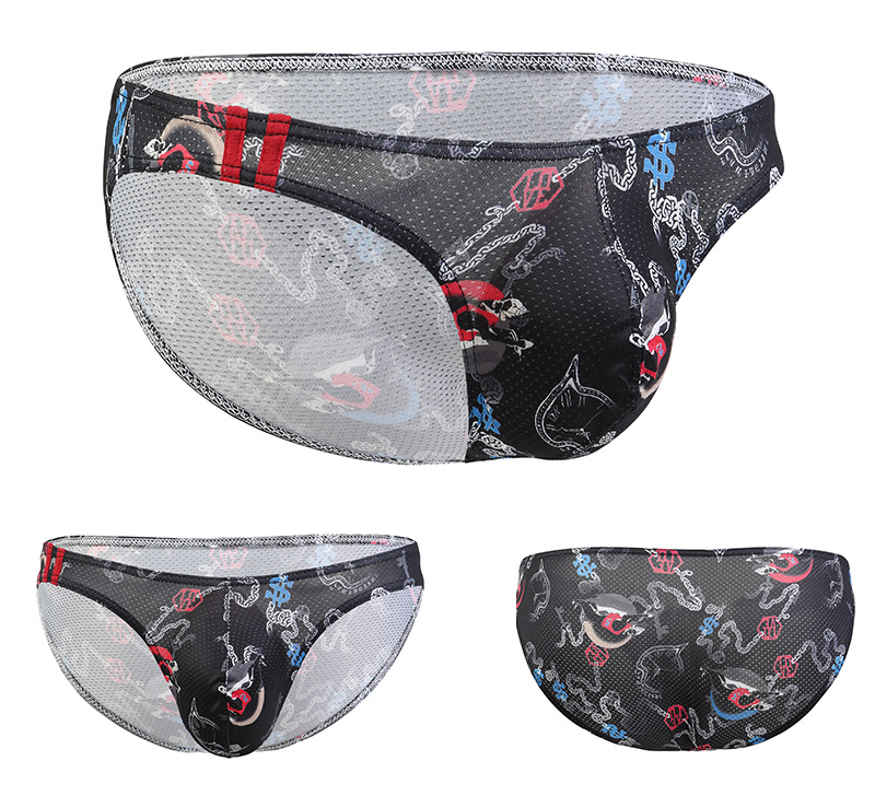 GAY 구미 대외 무역 로우 웨이스트 남성 속옷 헤드 프린팅 U 볼록 메쉬 통기성 수분 위킹 작은 삼각형 E083