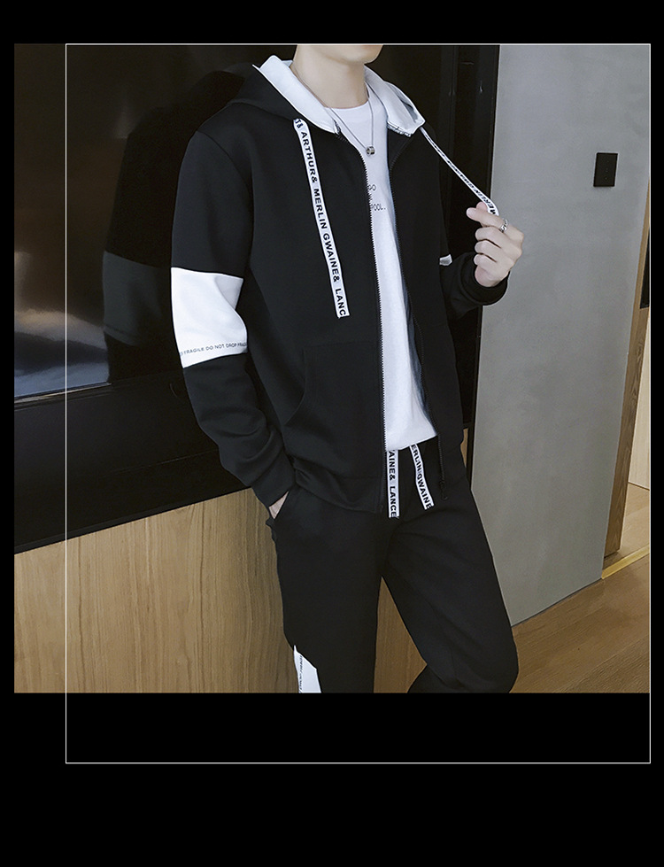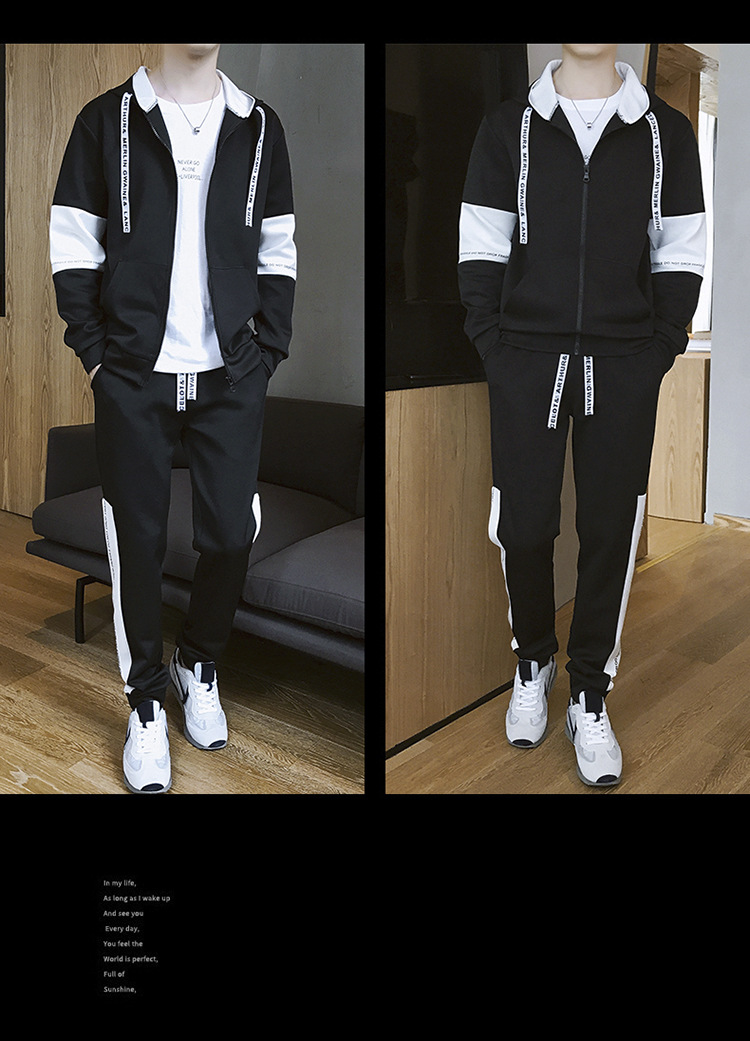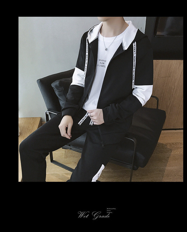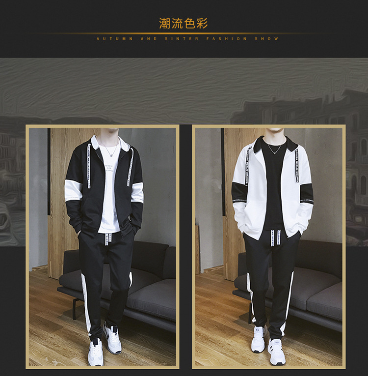 남성용 스웨트셔츠 세트 가을 겨울 한국 스타일 루즈 핏 청소년 학생 캐주얼 스포츠 긴 바지 남성복 유행 의류스토어 가기