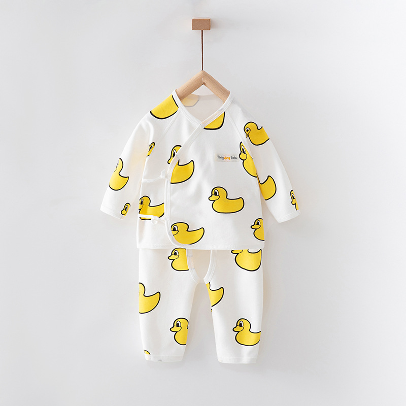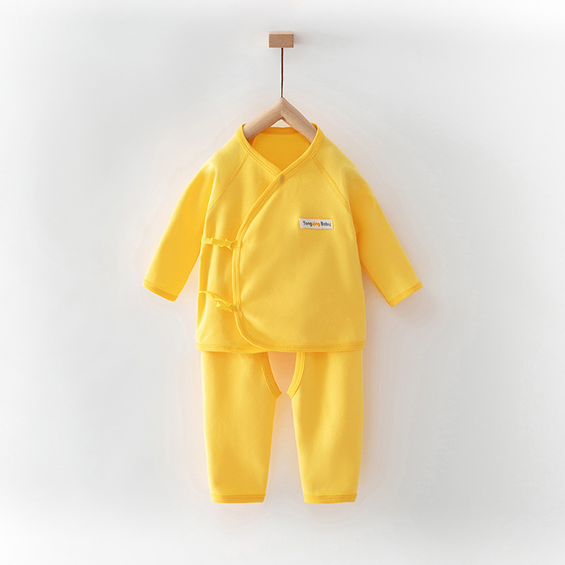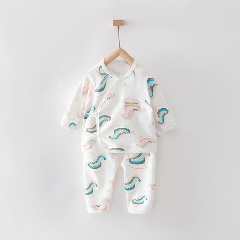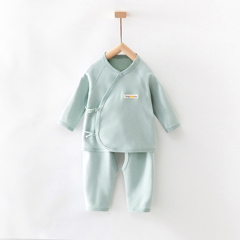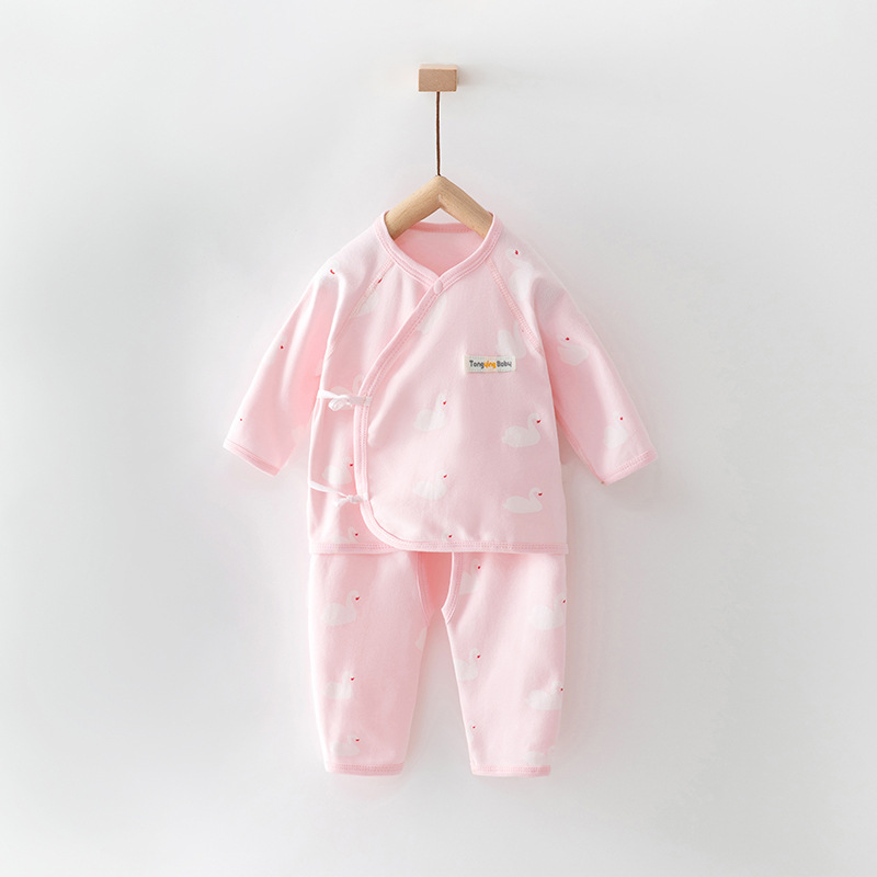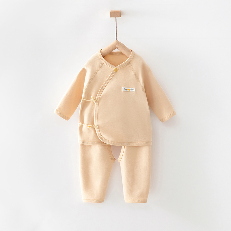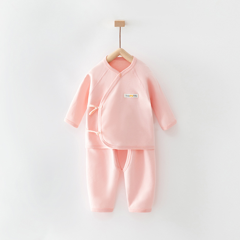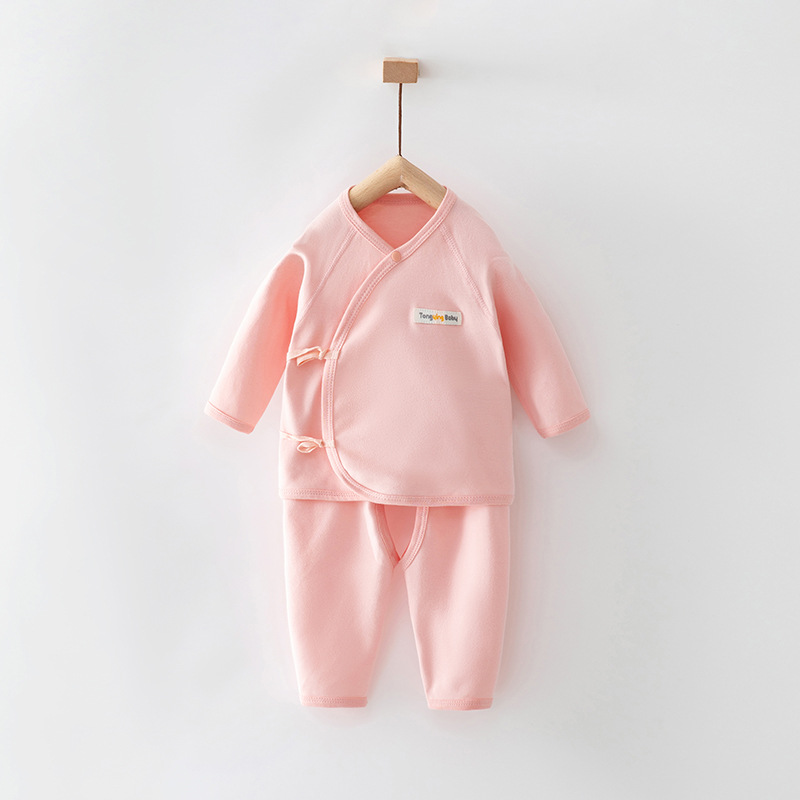신생아 사계절 면 속옷 0-6 개월 아기 소년 소녀 가정복 레이스업 탑 오픈 가랑이 바지 세트