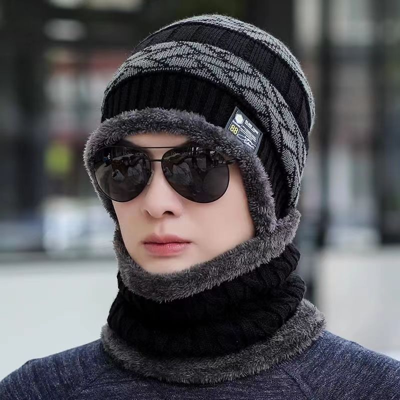 모자 남자의 겨울 니트 울 모자 기모 두꺼운 한국 스타일 유행 따뜻한 방한 사이클링 가을과 겨울 남성 면 모자