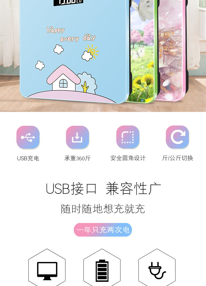 학생을위한 가정용 계량 저울 귀여운 기숙사 성인 내구성 전자 저울 소녀를위한 휴대용 체중 측정 체지방 저울
