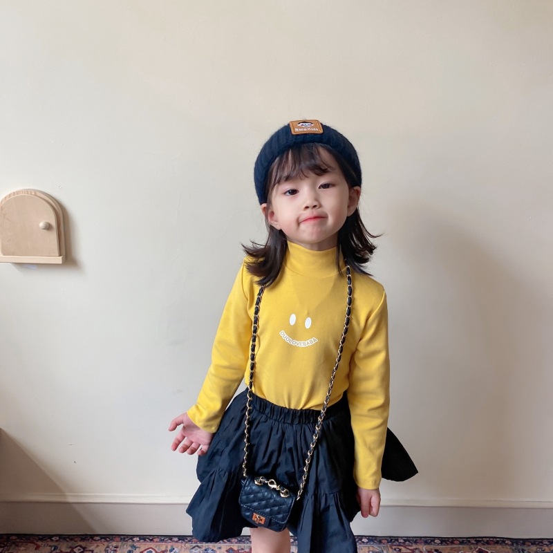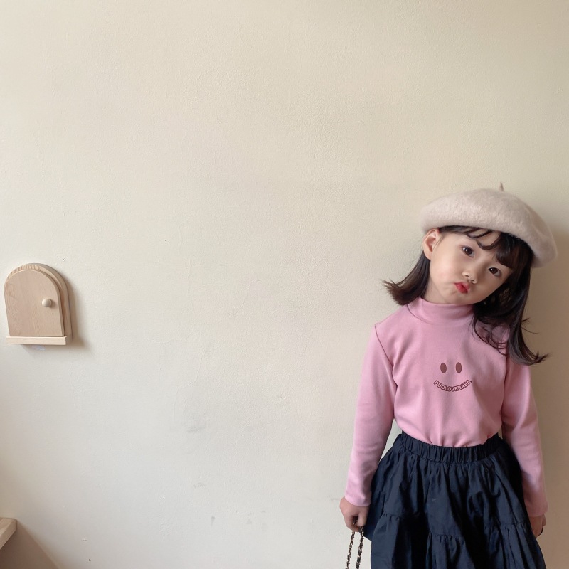 2024 가을 소녀 터틀넥 바닥 셔츠 어린이 귀여운 긴팔 티셔츠 한국어 버전 인쇄스토어 가기