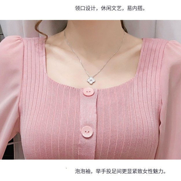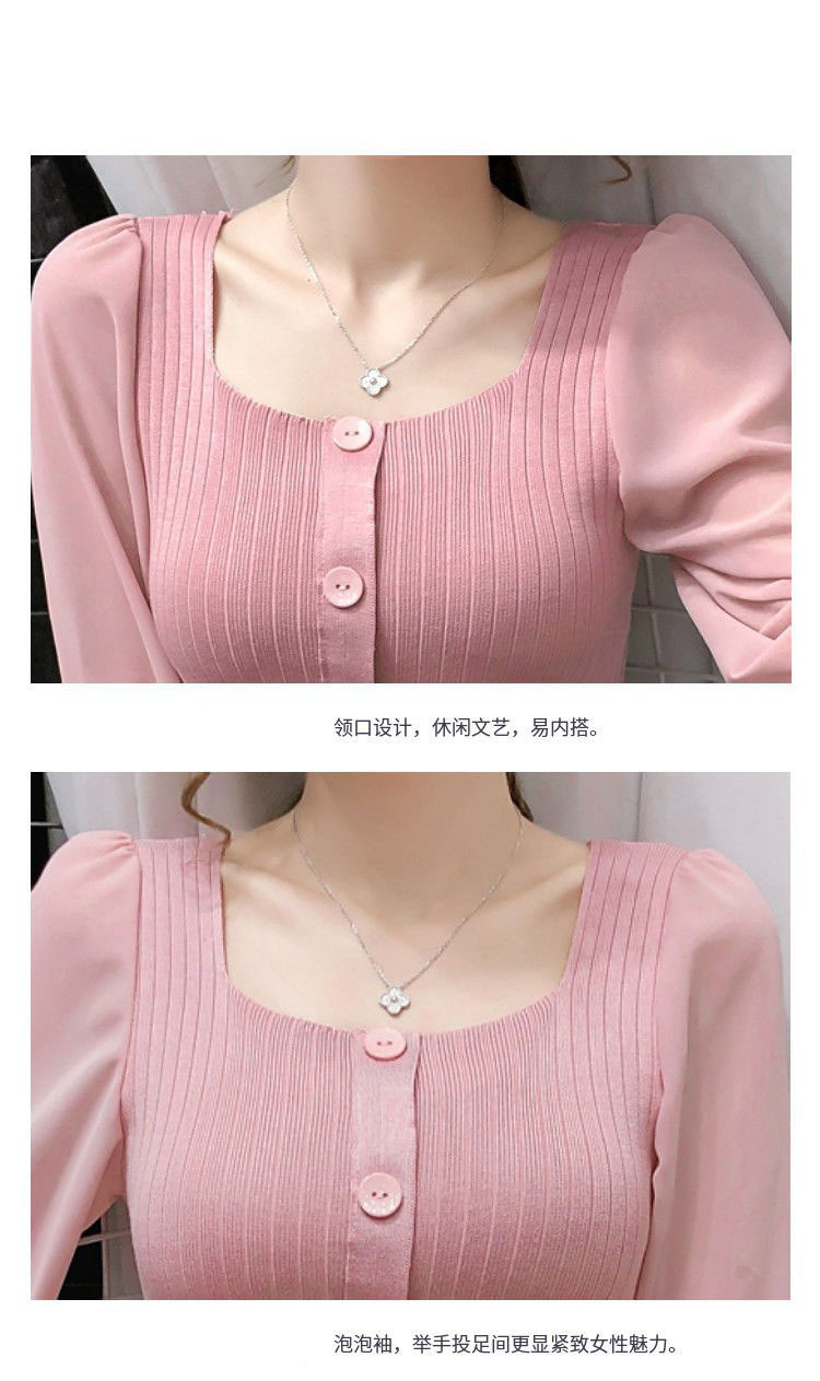 커버 팔 봄 새로운 스타일 스퀘어 칼라 셔츠 탑 여성용 슬림 핏 슬리밍 긴 소매 쉬폰 퍼프 슬리브 니트 셔츠스토어 가기