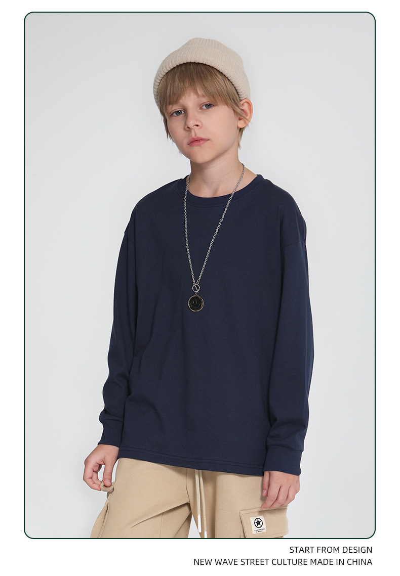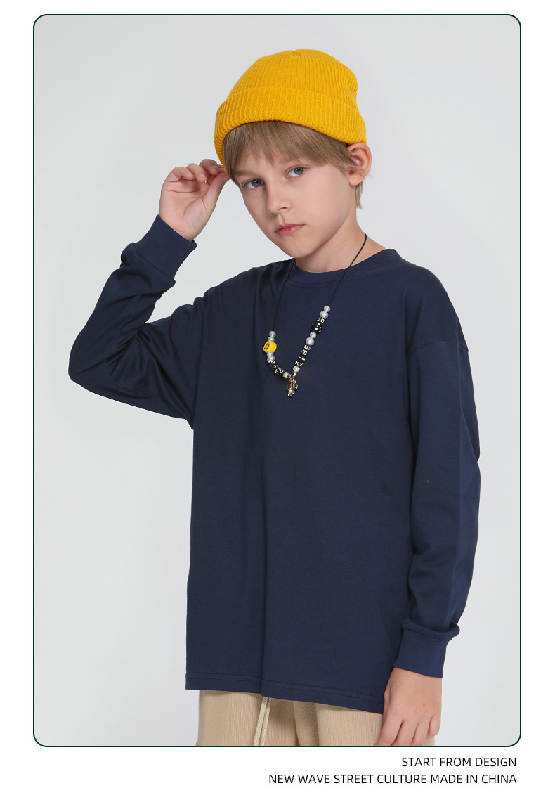 MT 아동복 25 한국판 아동 캐주얼 단색 상의 남아용 순면 티셔츠 중대형 아동용 긴팔 통기성 이너웨어스토어 가기