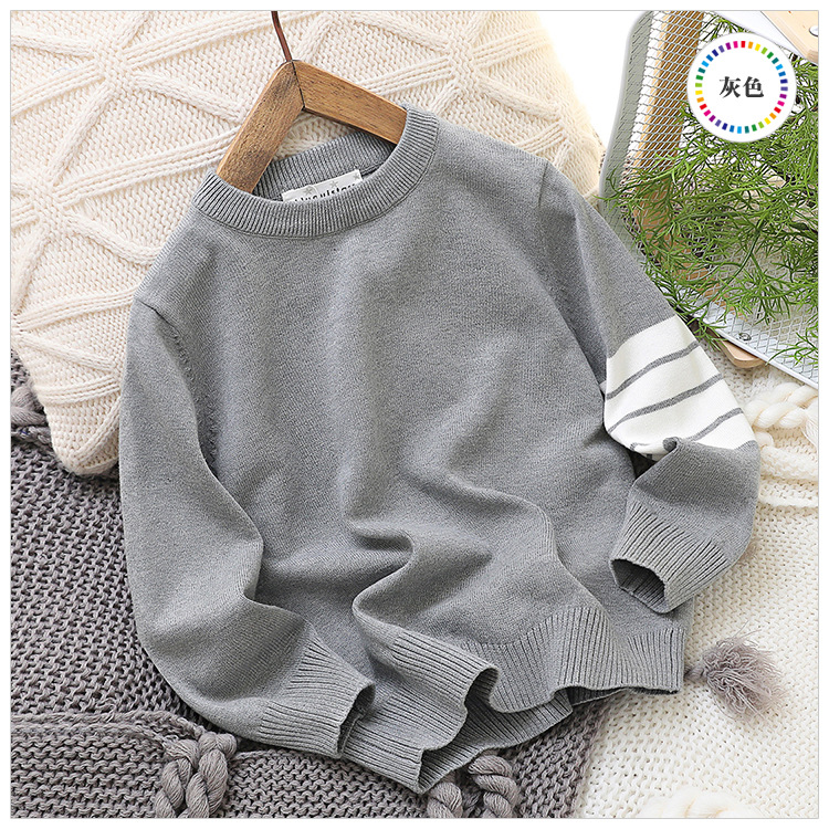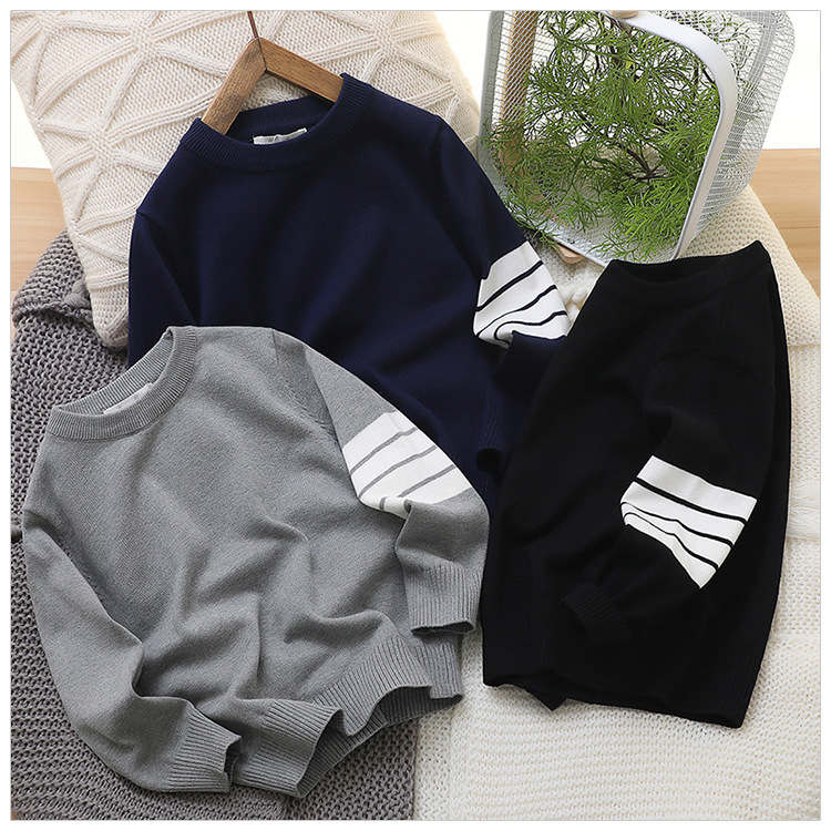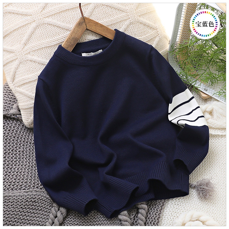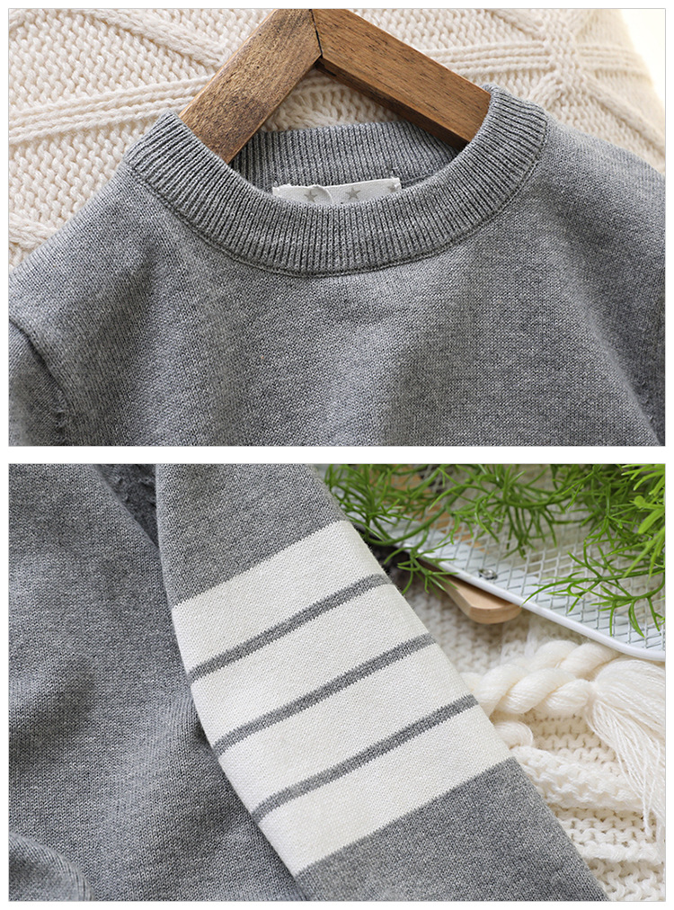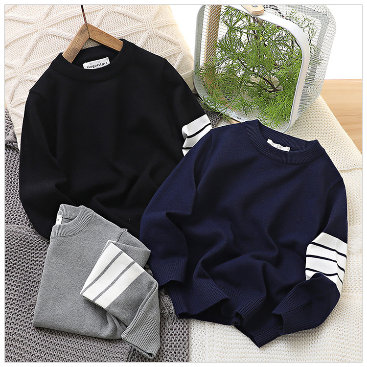 2025년 가을 아동 니트 스웨터, 중대형 아동용 풀오버 라운드넥 네줄 스트라이프 얇은 베이스 스웨터, 남녀 아동복스토어 가기