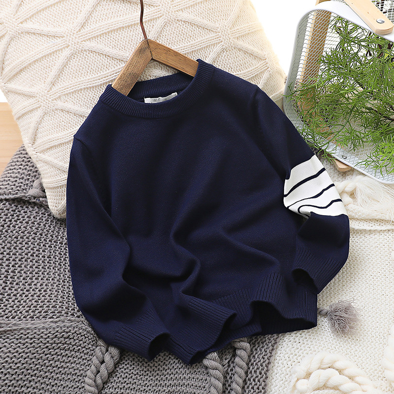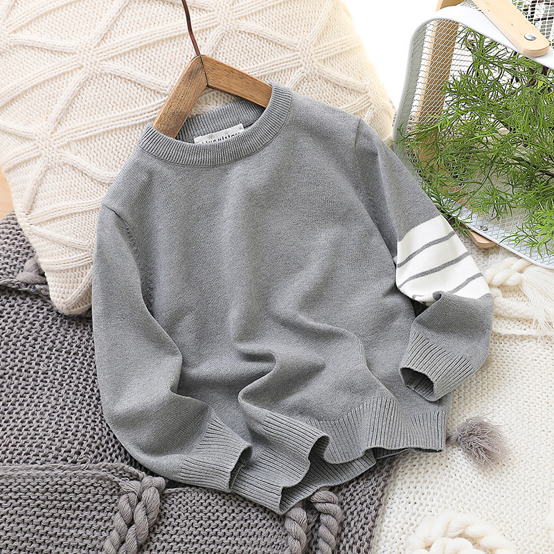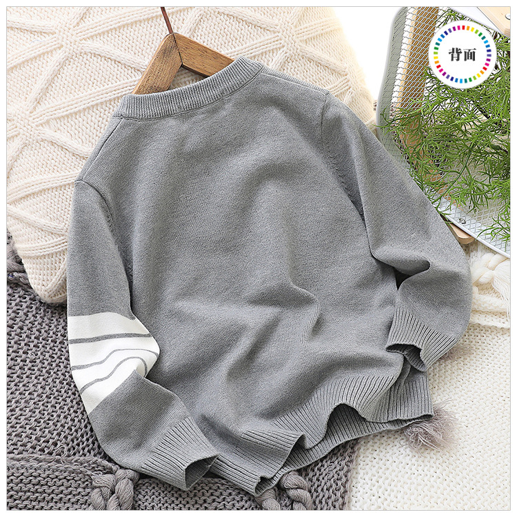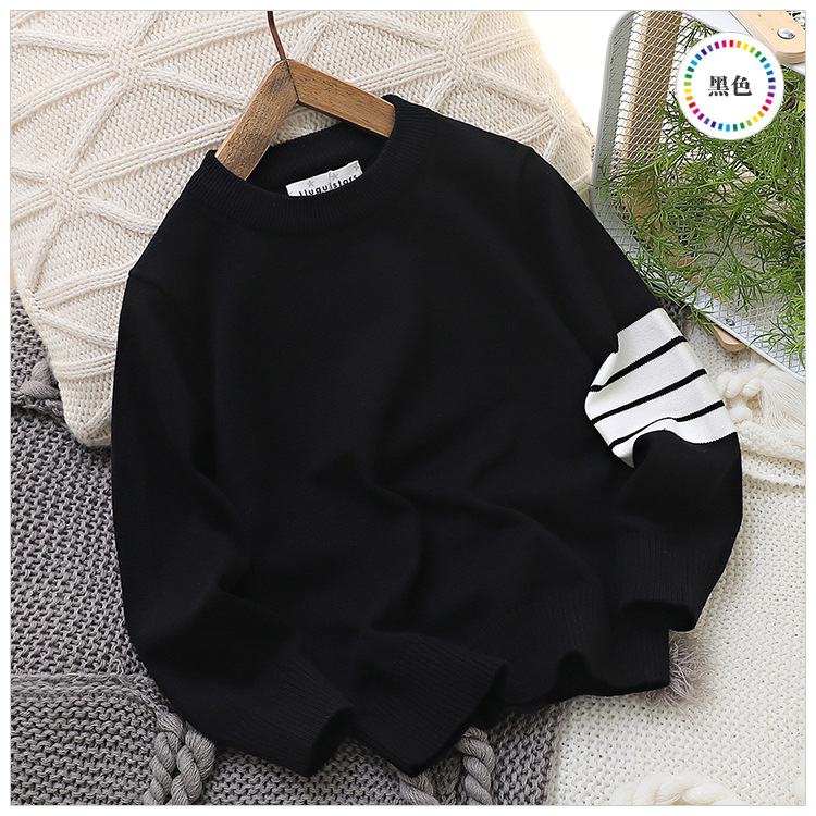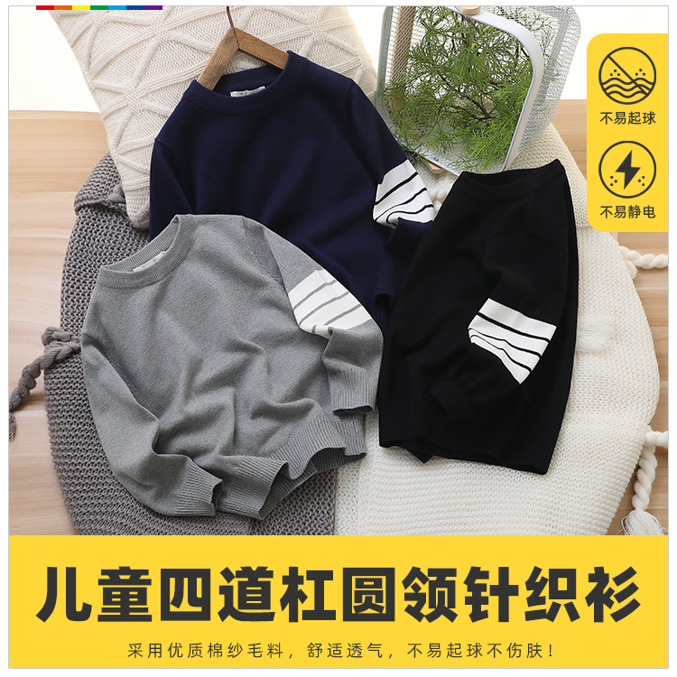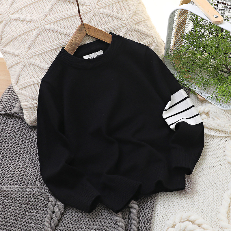 2025년 가을 아동 니트 스웨터, 중대형 아동용 풀오버 라운드넥 네줄 스트라이프 얇은 베이스 스웨터, 남녀 아동복스토어 가기
