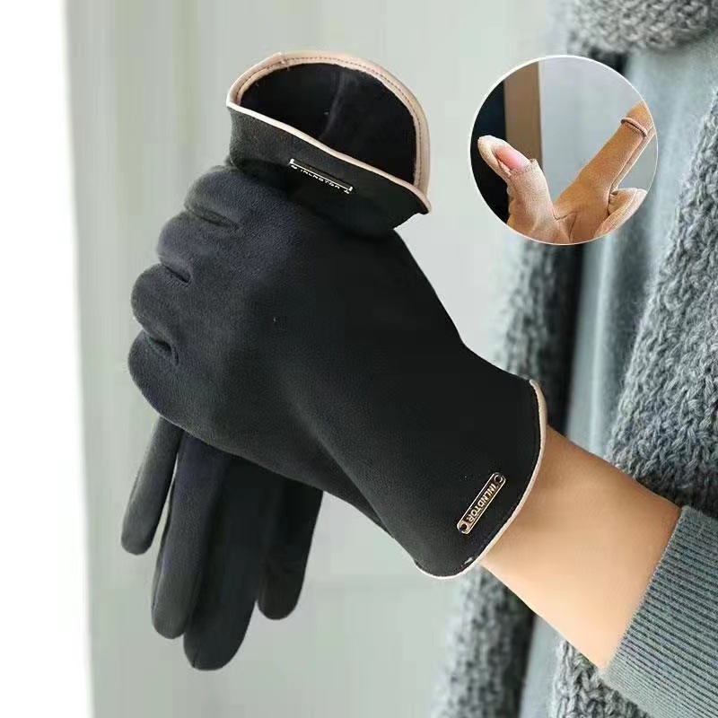 스웨이드 사이클링 장갑 겨울용 방풍 방한 남녀 공용 가을 겨울 따뜻한 가죽 장갑 겨울용 터치스크린 오픈 핑거스토어 가기
