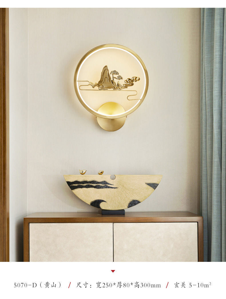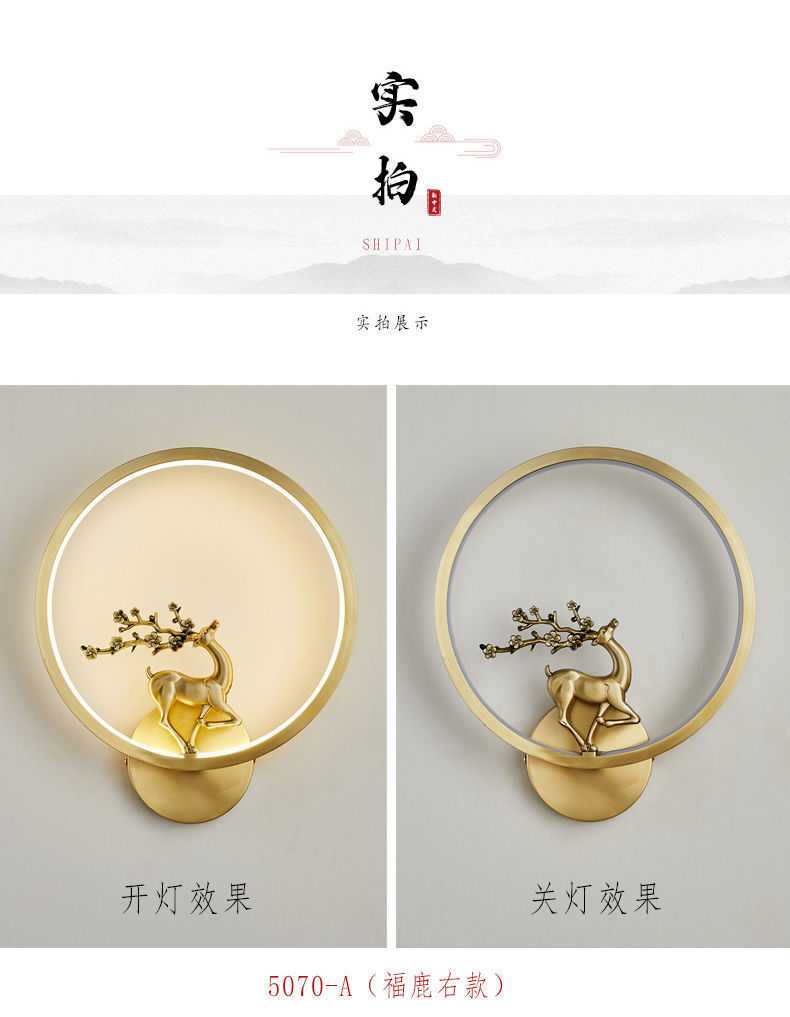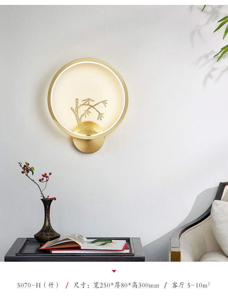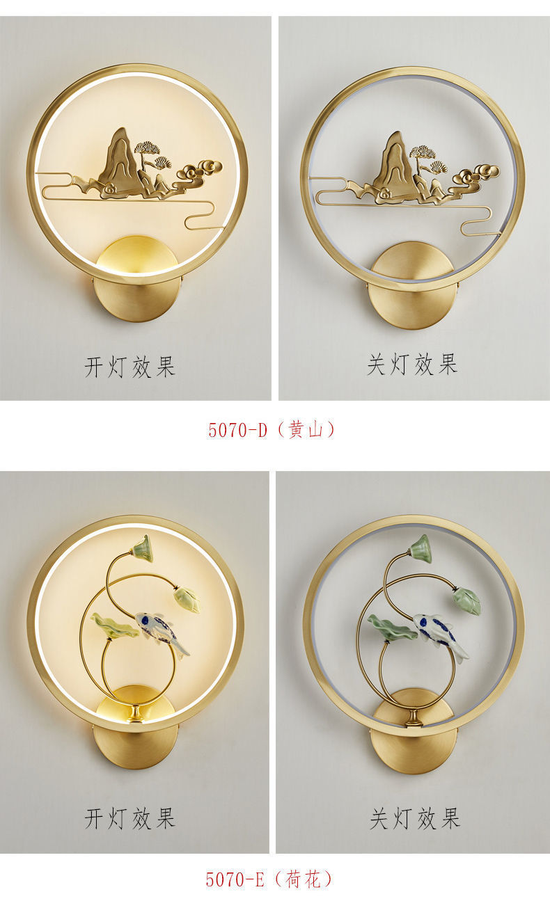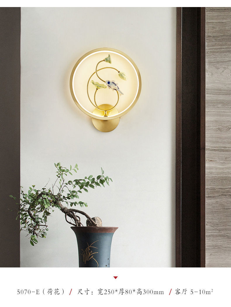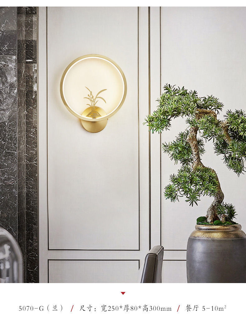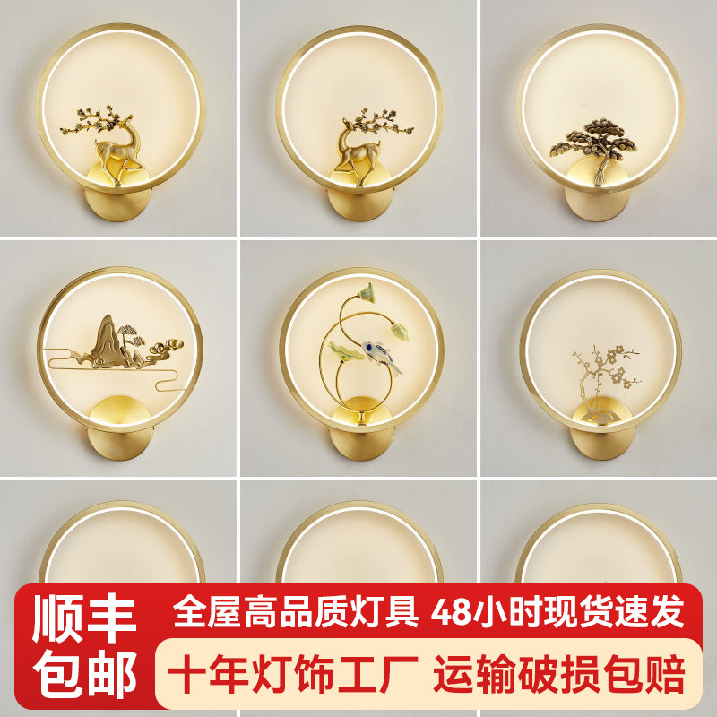 Yifei 올 구리 새로운 중국식 벽 램프 간단한 현대 거실 TV 배경 벽 통로 벽 램프 침실 침대 옆 램프스토어 가기