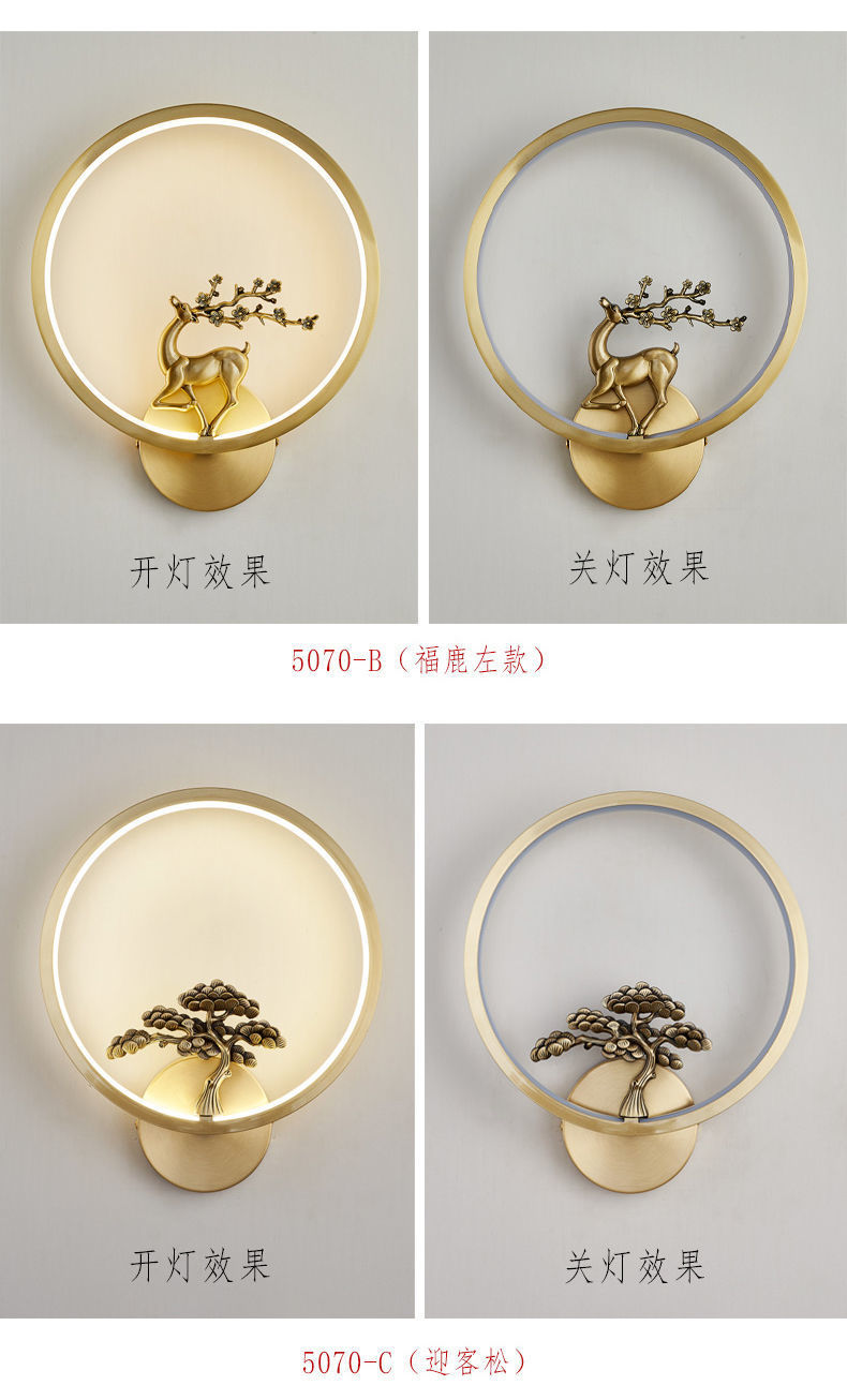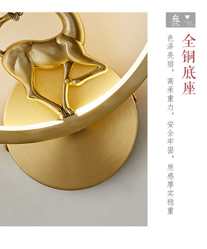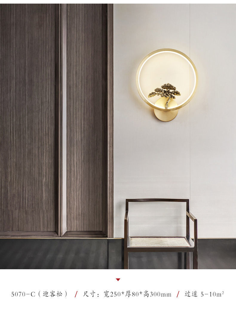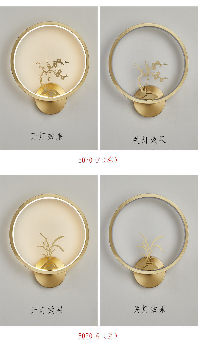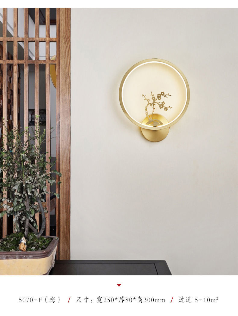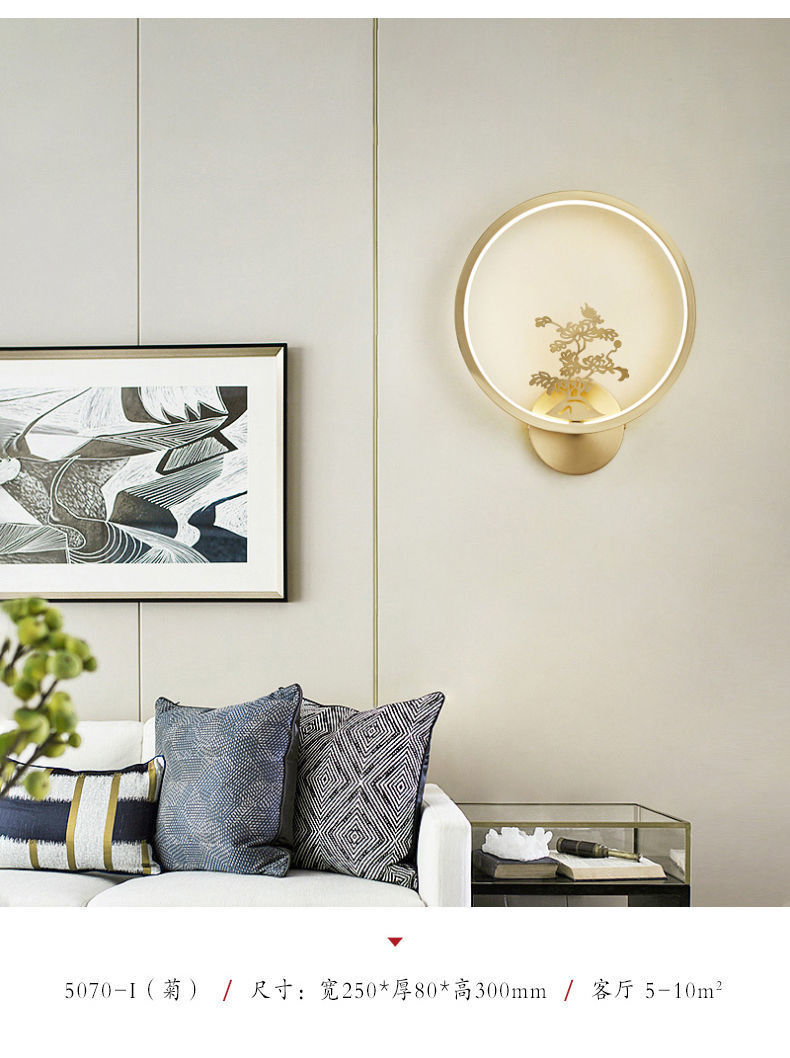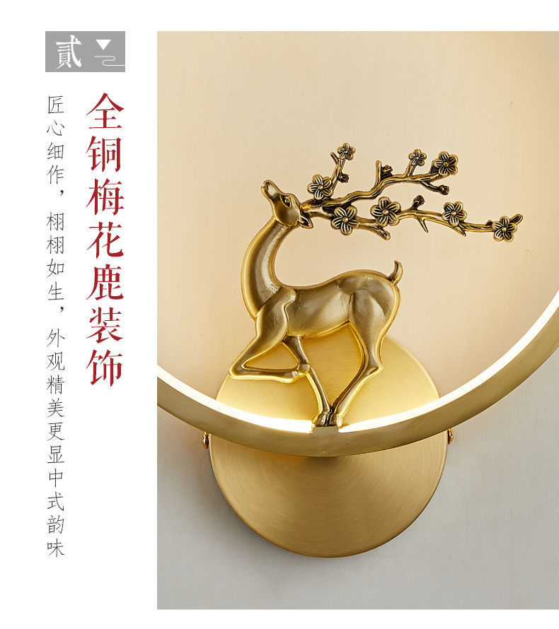 Yifei 올 구리 새로운 중국식 벽 램프 간단한 현대 거실 TV 배경 벽 통로 벽 램프 침실 침대 옆 램프스토어 가기