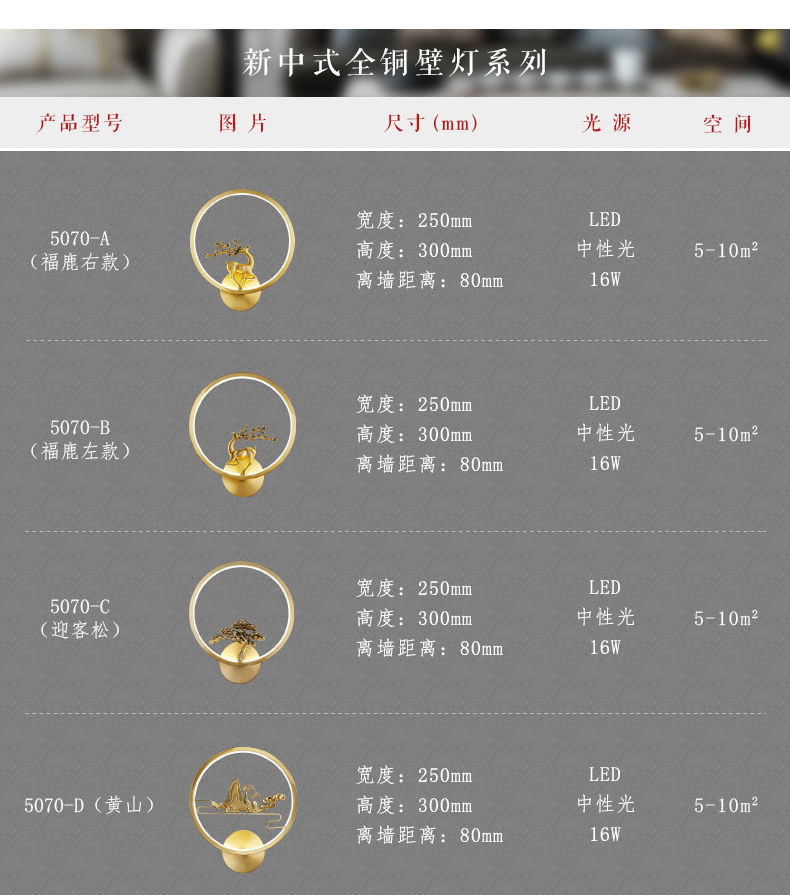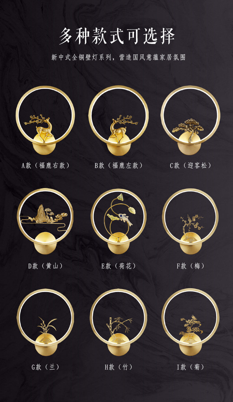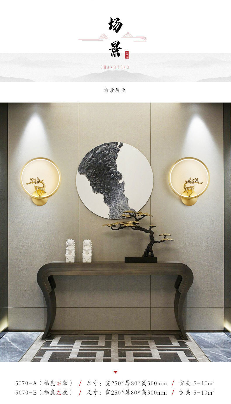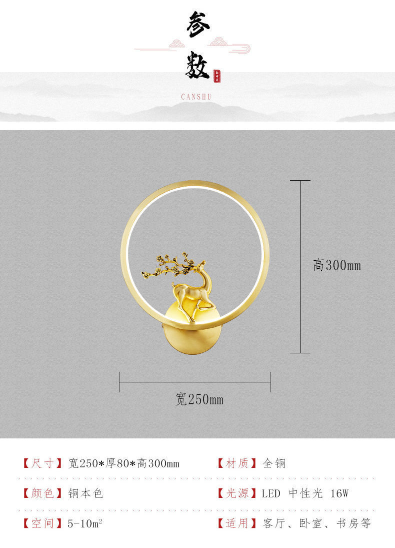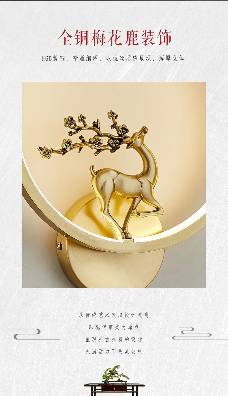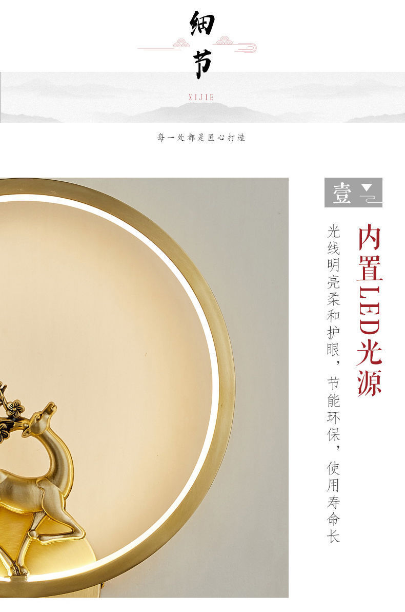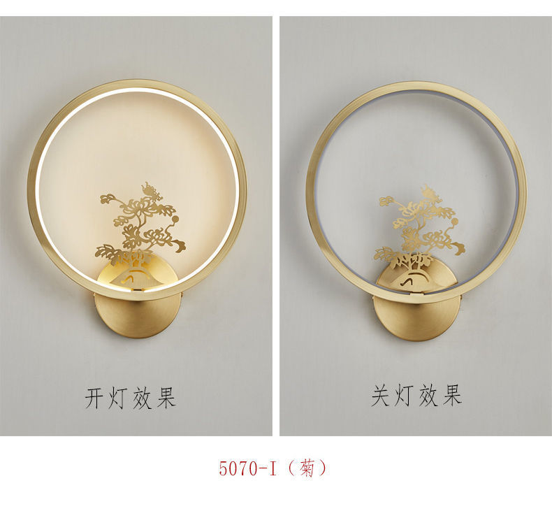 Yifei 올 구리 새로운 중국식 벽 램프 간단한 현대 거실 TV 배경 벽 통로 벽 램프 침실 침대 옆 램프스토어 가기