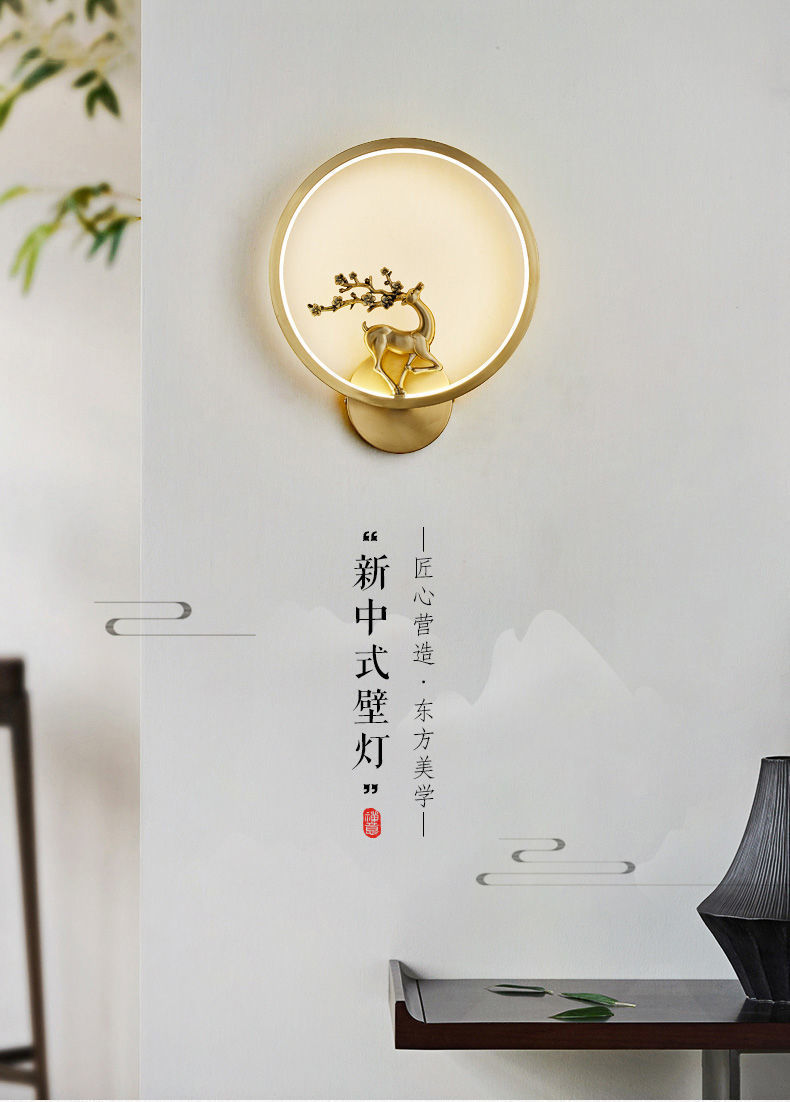 Yifei 올 구리 새로운 중국식 벽 램프 간단한 현대 거실 TV 배경 벽 통로 벽 램프 침실 침대 옆 램프