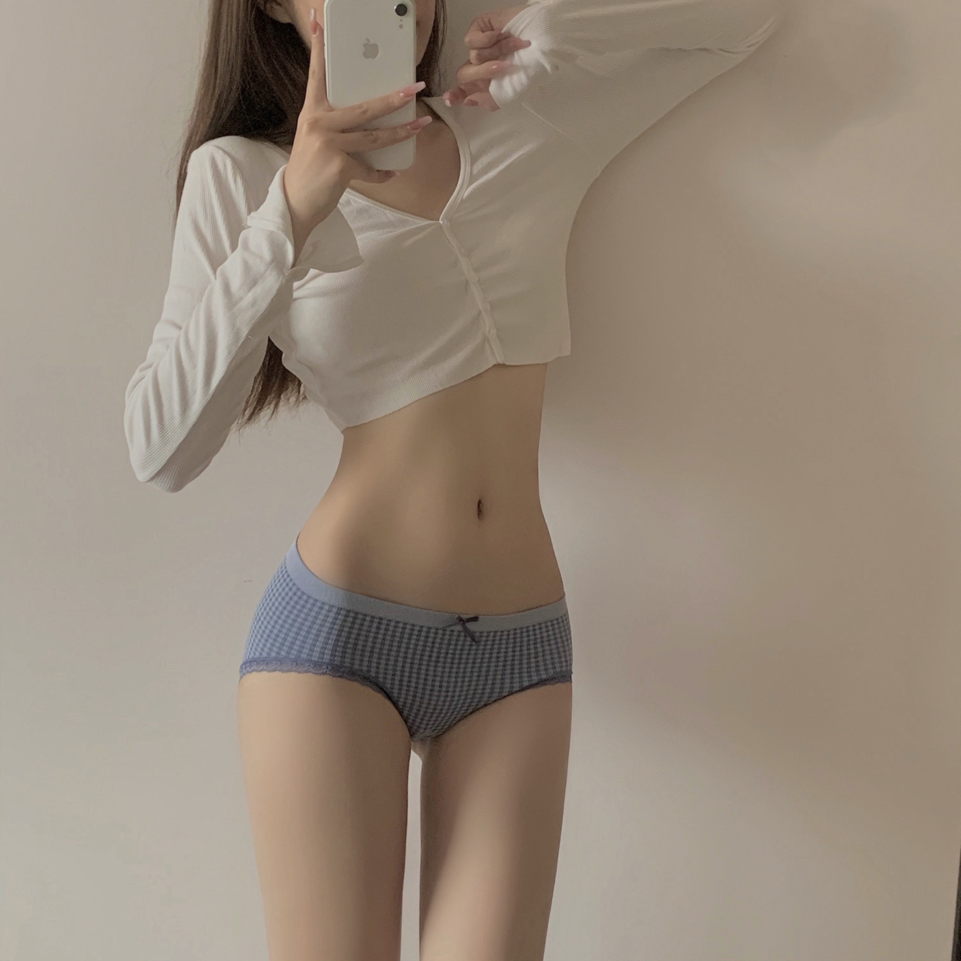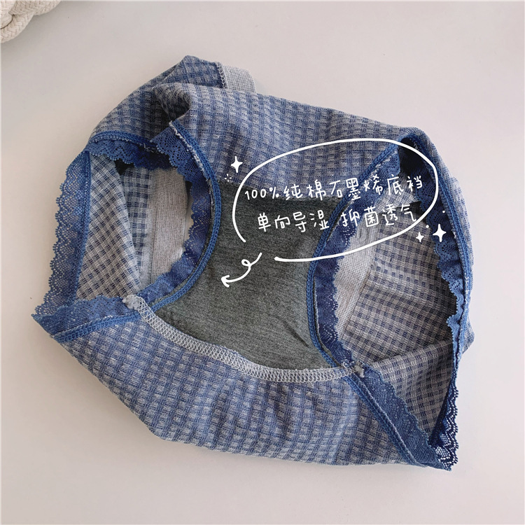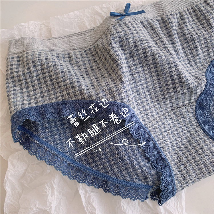 일본 격자 무늬 속옷 여성용 미드 웨이스트 원활한 모달 레이스 트리밍 순면 그래핀 가랑이 브리프스토어 가기