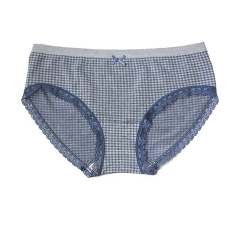 일본 격자 무늬 속옷 여성용 미드 웨이스트 원활한 모달 레이스 트리밍 순면 그래핀 가랑이 브리프