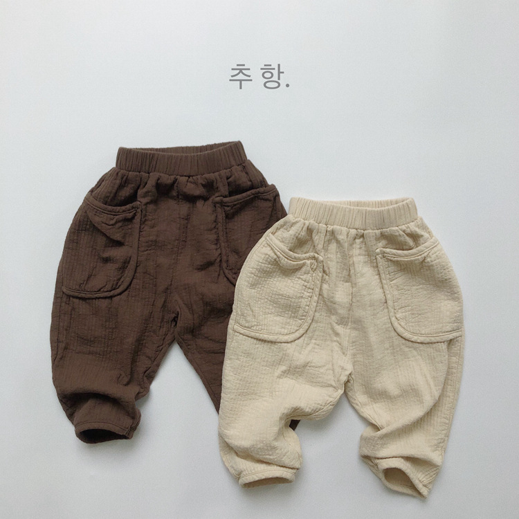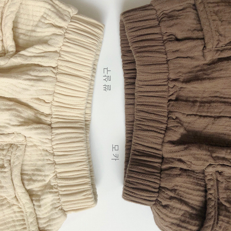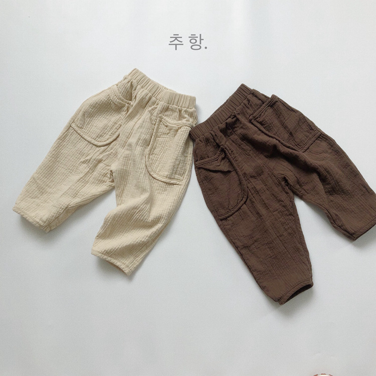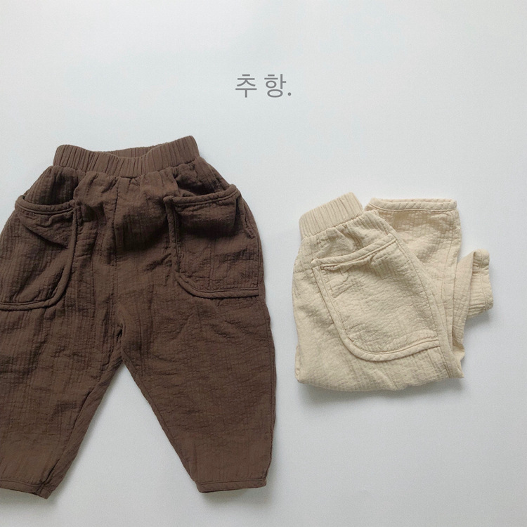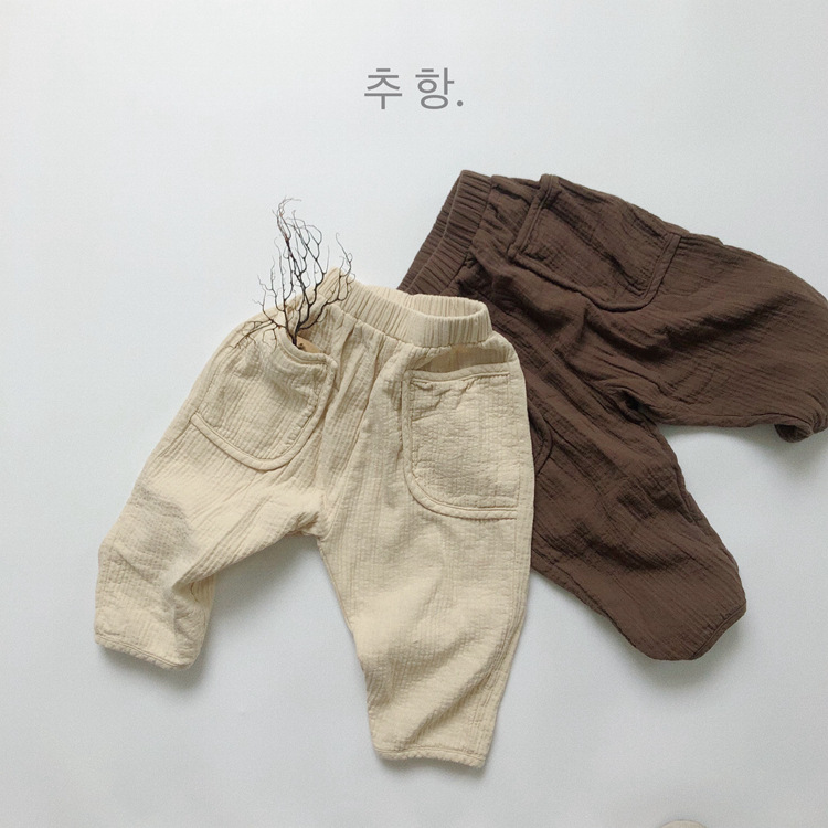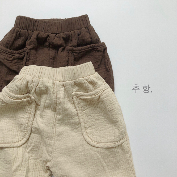 한국 아동 의류 가을과 겨울 소년 소녀 거품 줄무늬 풀 에지 큰 무 바지 빈티지 캐주얼 바지 아동면과 린넨 바지스토어 가기