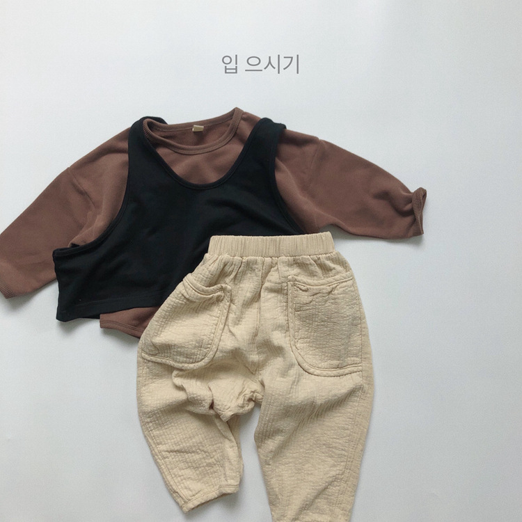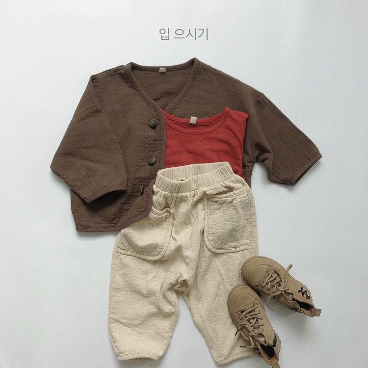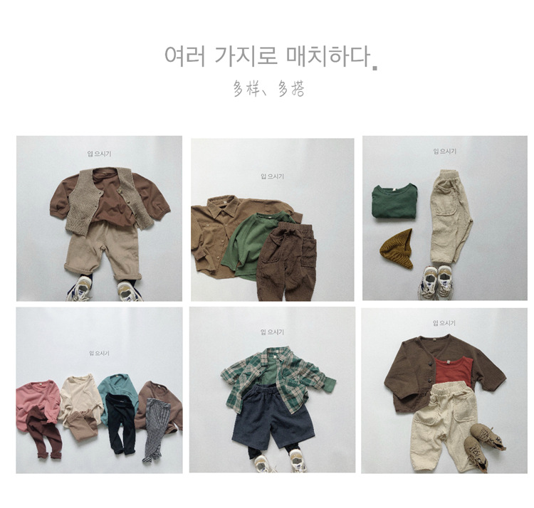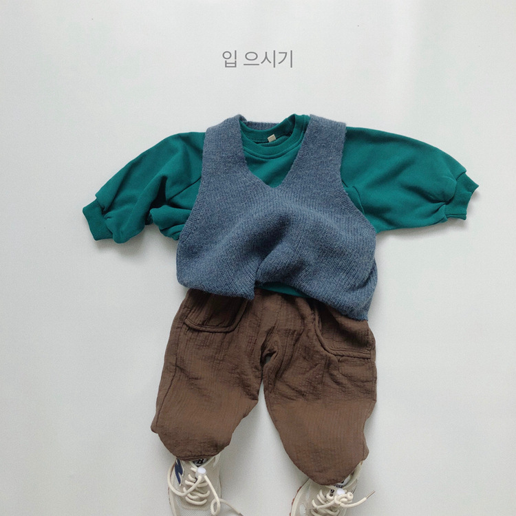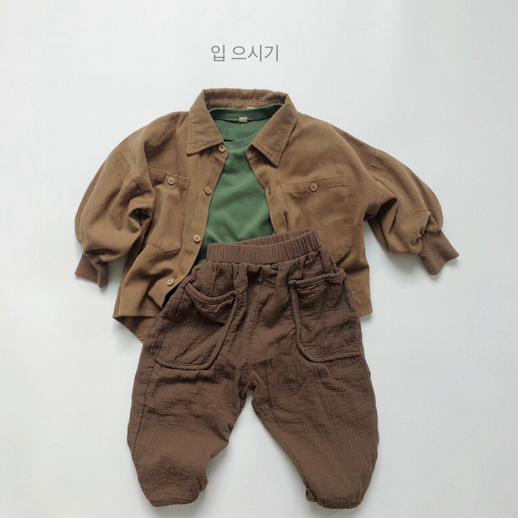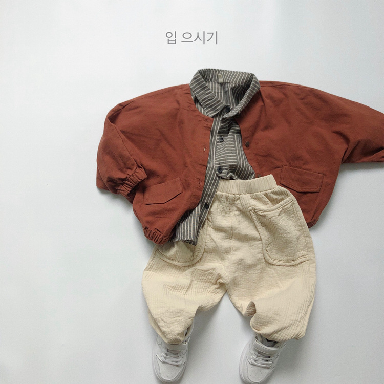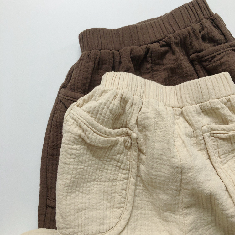 한국 아동 의류 가을과 겨울 소년 소녀 거품 줄무늬 풀 에지 큰 무 바지 빈티지 캐주얼 바지 아동면과 린넨 바지스토어 가기
