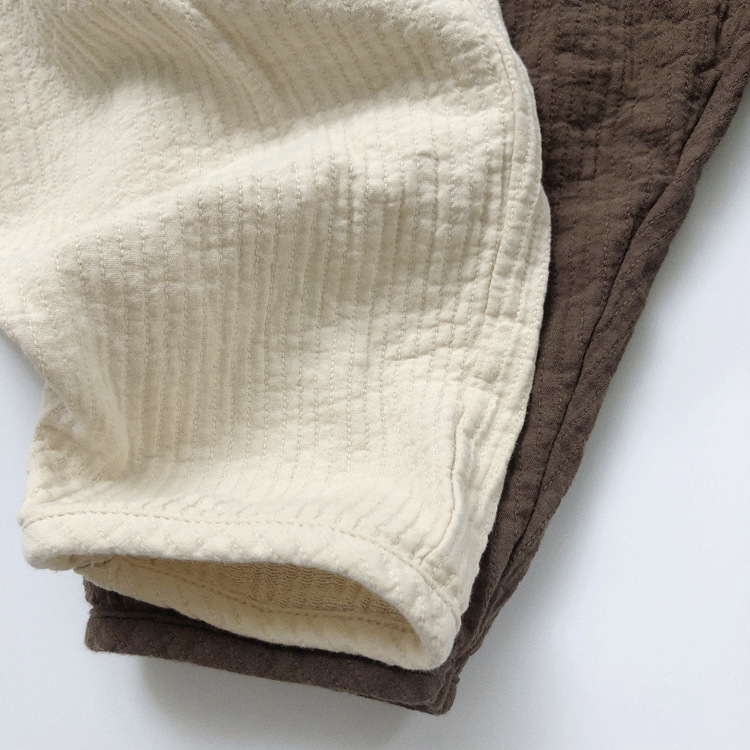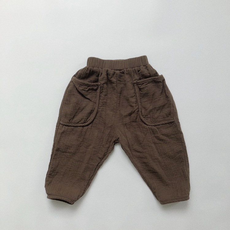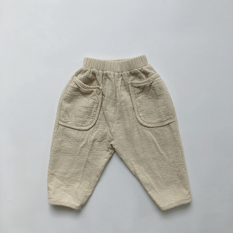 한국 아동 의류 가을과 겨울 소년 소녀 거품 줄무늬 풀 에지 큰 무 바지 빈티지 캐주얼 바지 아동면과 린넨 바지