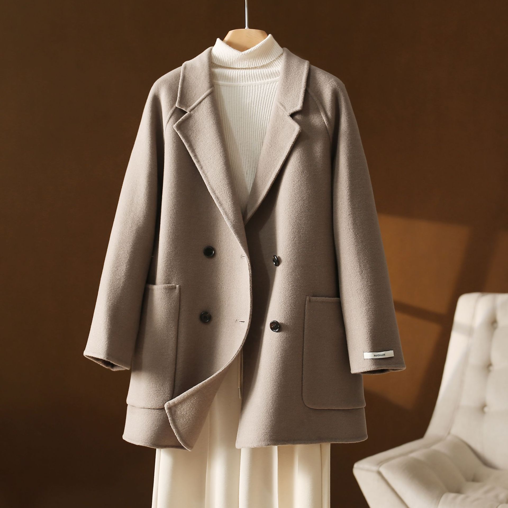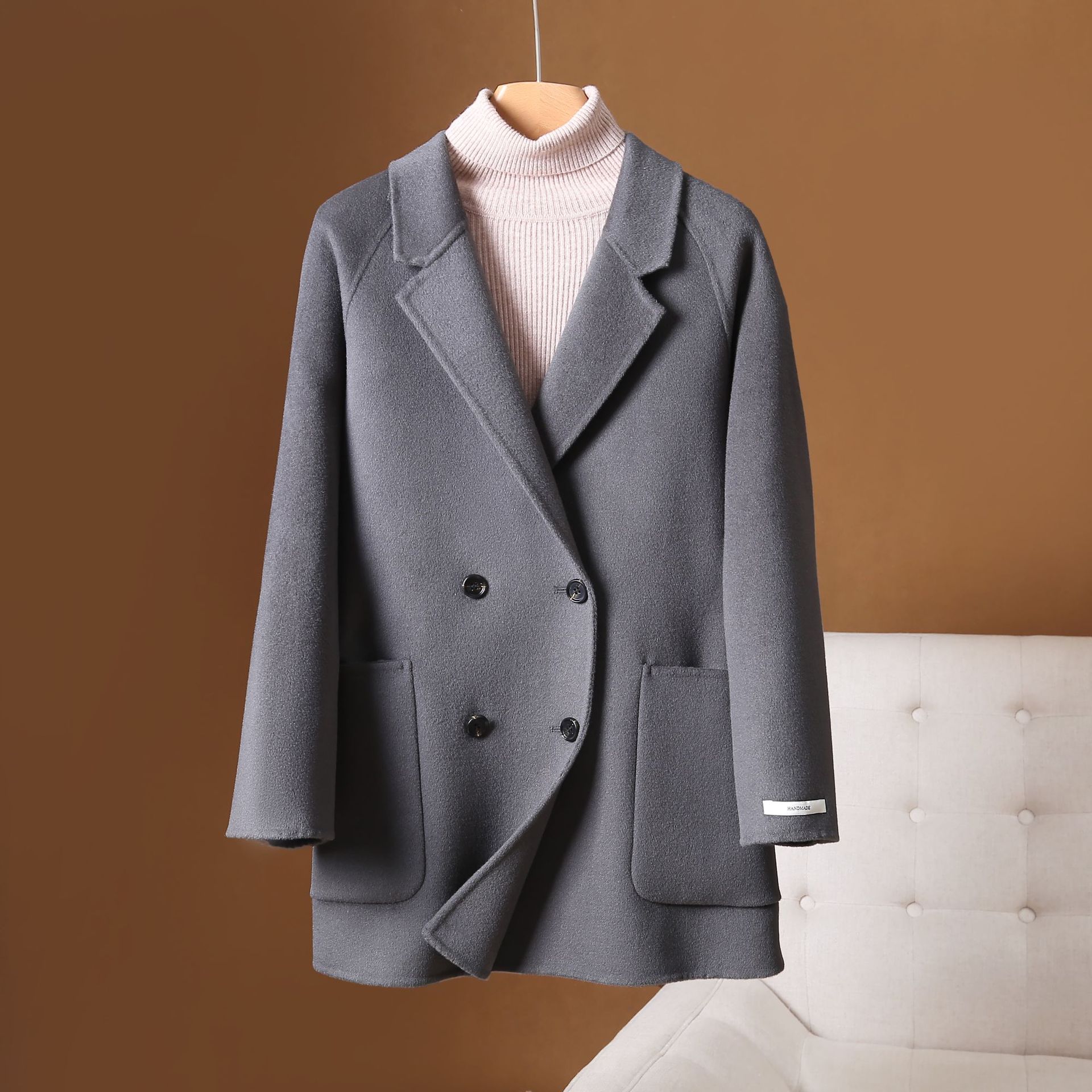 面料1:100%羊毛 《黑色 卡其色 栗咖色 面料风格为短顺毛》