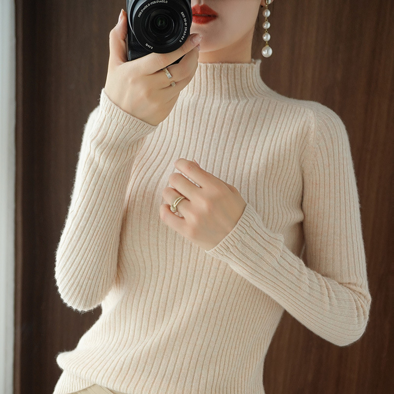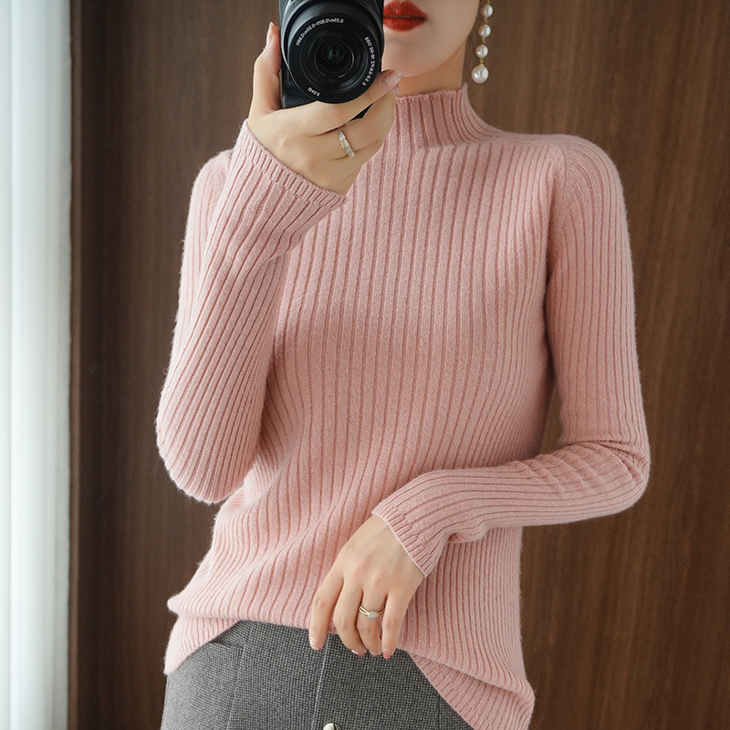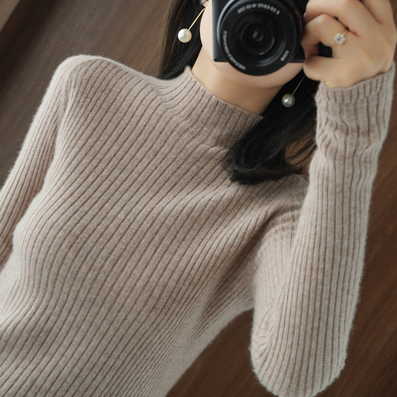 가을과 겨울 새로운 하프 터틀넥 스웨터 여성용 슬림핏 풀오버 솔리드 컬러 슬림핏 베이스 셔츠 긴팔 내부 타이트핏 스웨터