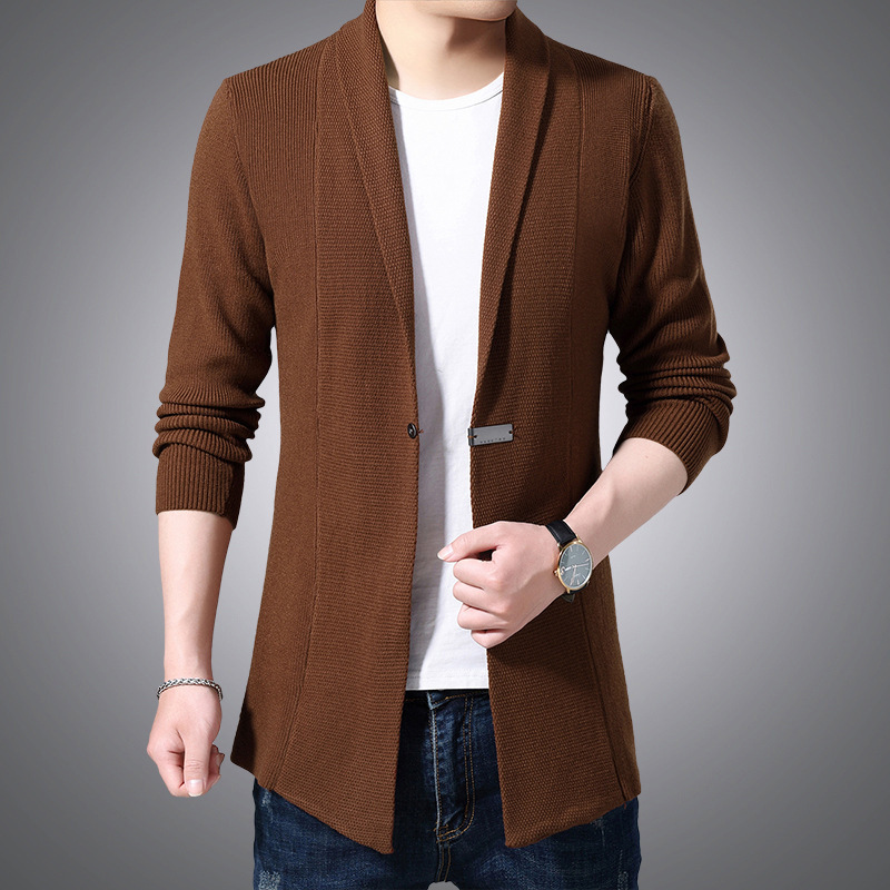 • 秋冬男士纯色外套中长款韩版帅气男装羊毛衣开衫青中年针织线衫潮