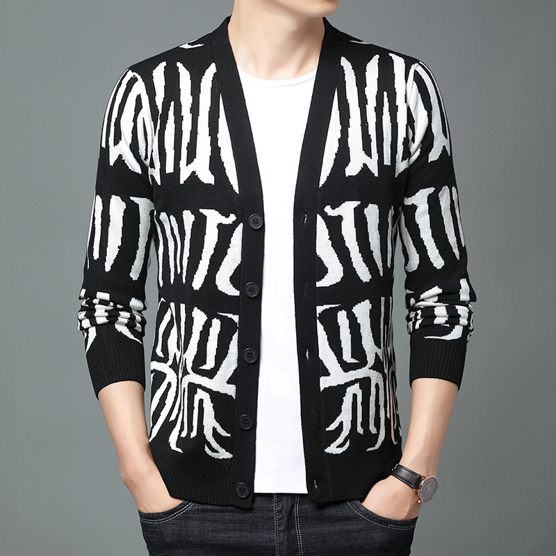 • 秋季男士毛衣外套潮流时尚商务休闲外穿线衣图案披肩长袖开衫男装