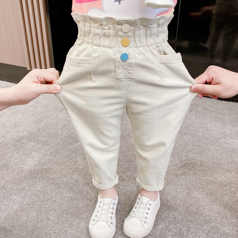 여아 하이 웨이스트 캐주얼 바지 2021 새로운 어린이 가을 어린이 바지 서양 스타일 한국 느슨한 아기의 가을 착용